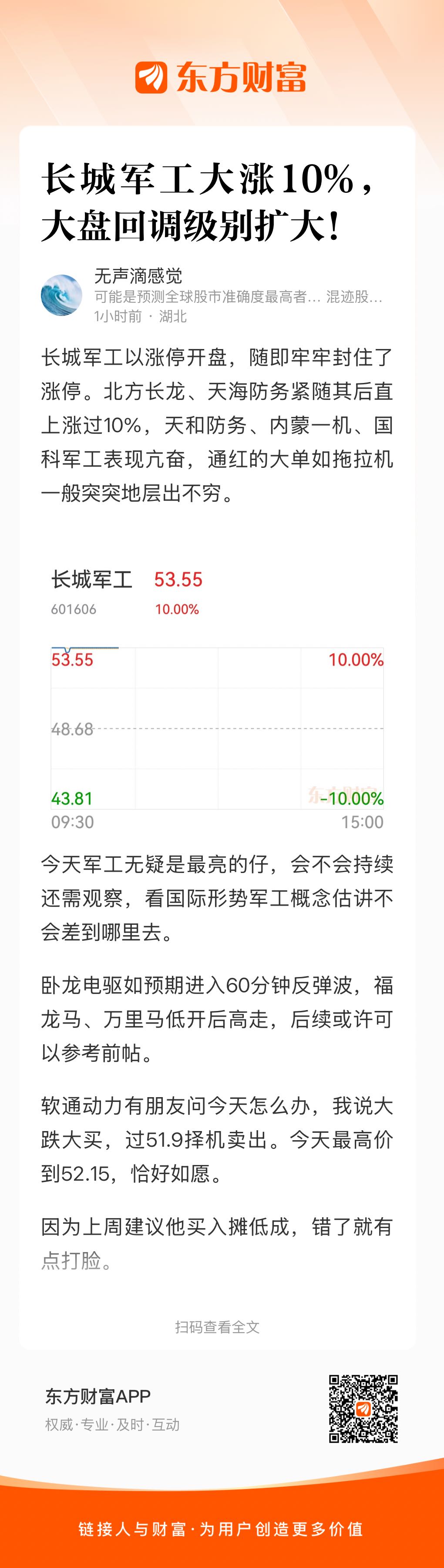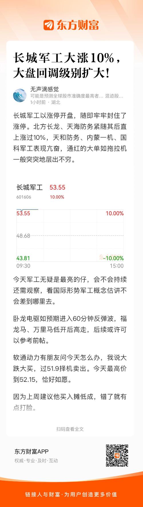 软通动力有朋友问今天怎么办,我说大跌大买,过51.9择机卖出。今天最高价到52.15,恰好如愿。