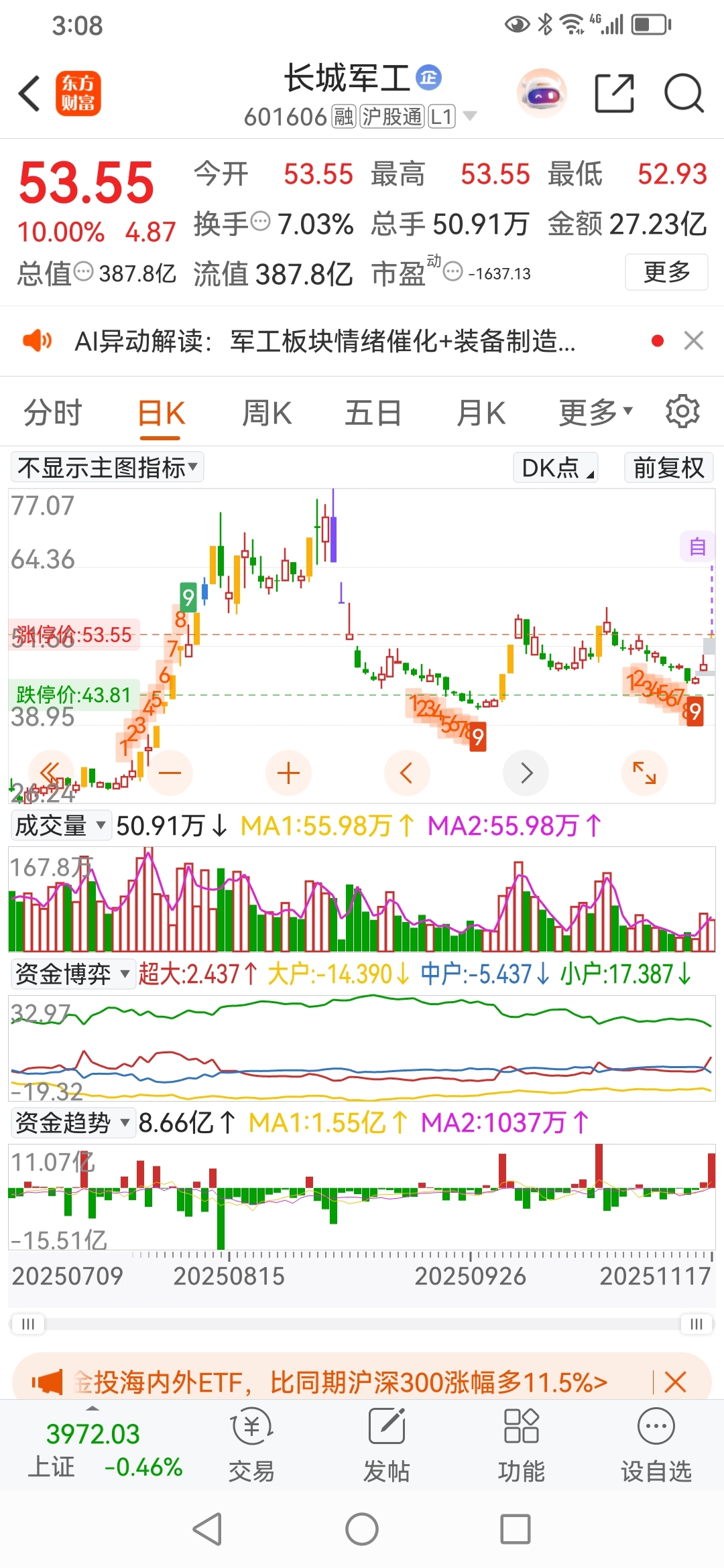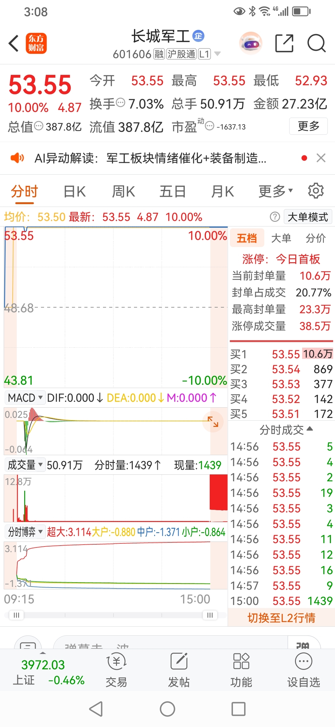 方军今天操盘长城军工,一字板。跟上航天发展,炒作。