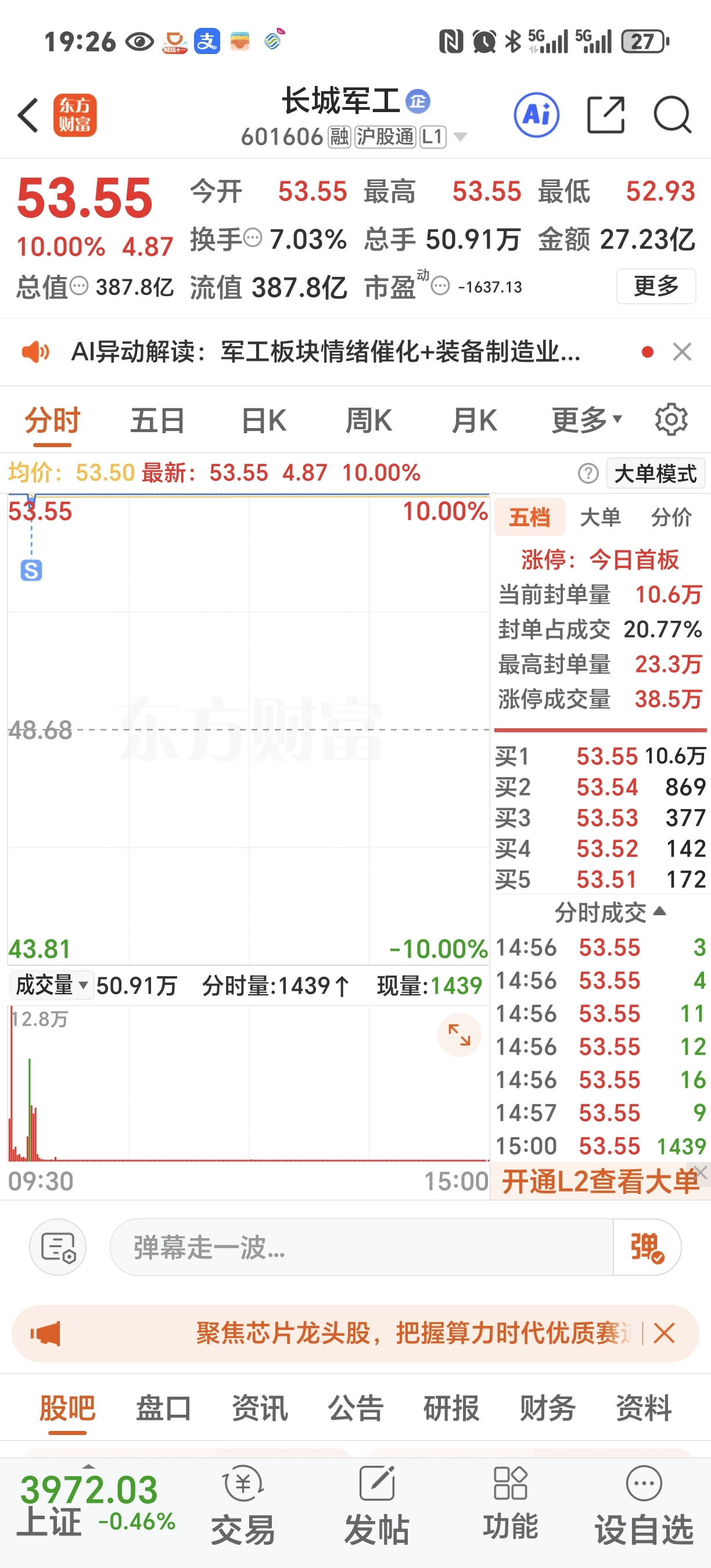 $长城军工(SH601606)$ 炒股20多年,今天这操作比农村妇女还妇女!