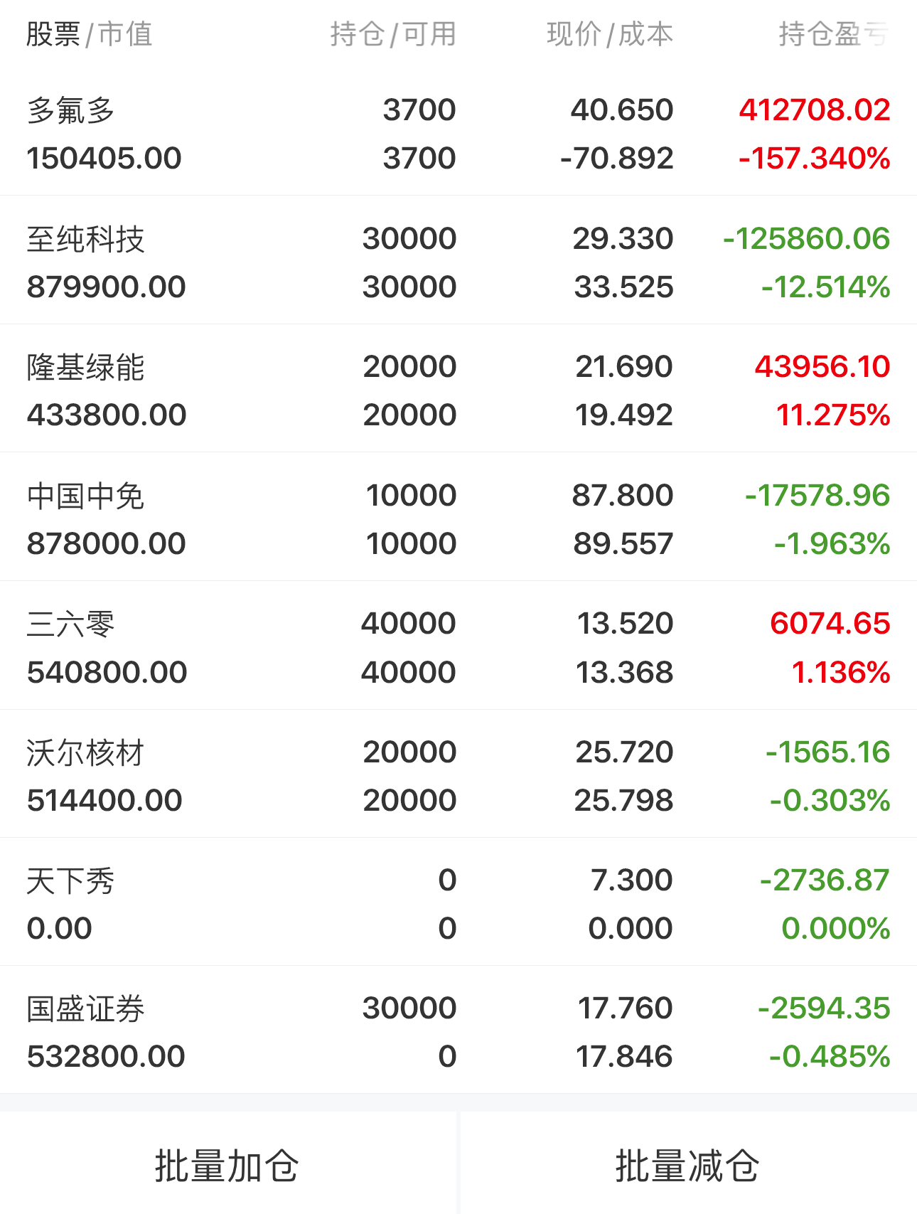 多氟多:今天继续冲高,大涨6个点。之前逢高不断做减法,所以已经是负成本了。但是能够走的这么强势,是前面没有想到的,反正现在负成本,随便它如何波动了。基本面来看,该股是固态电池这一波的人气龙头,公司动力电池订单自9月起激增,已排产至12月;2026年若产能充分释放,出货量预计可达30GWh,届时储能业务占比有望提升至50%-60%, 全年六氟磷酸锂出货量预计可达到约5万吨,基本面非常优秀,继续用五日线来做防守了。
