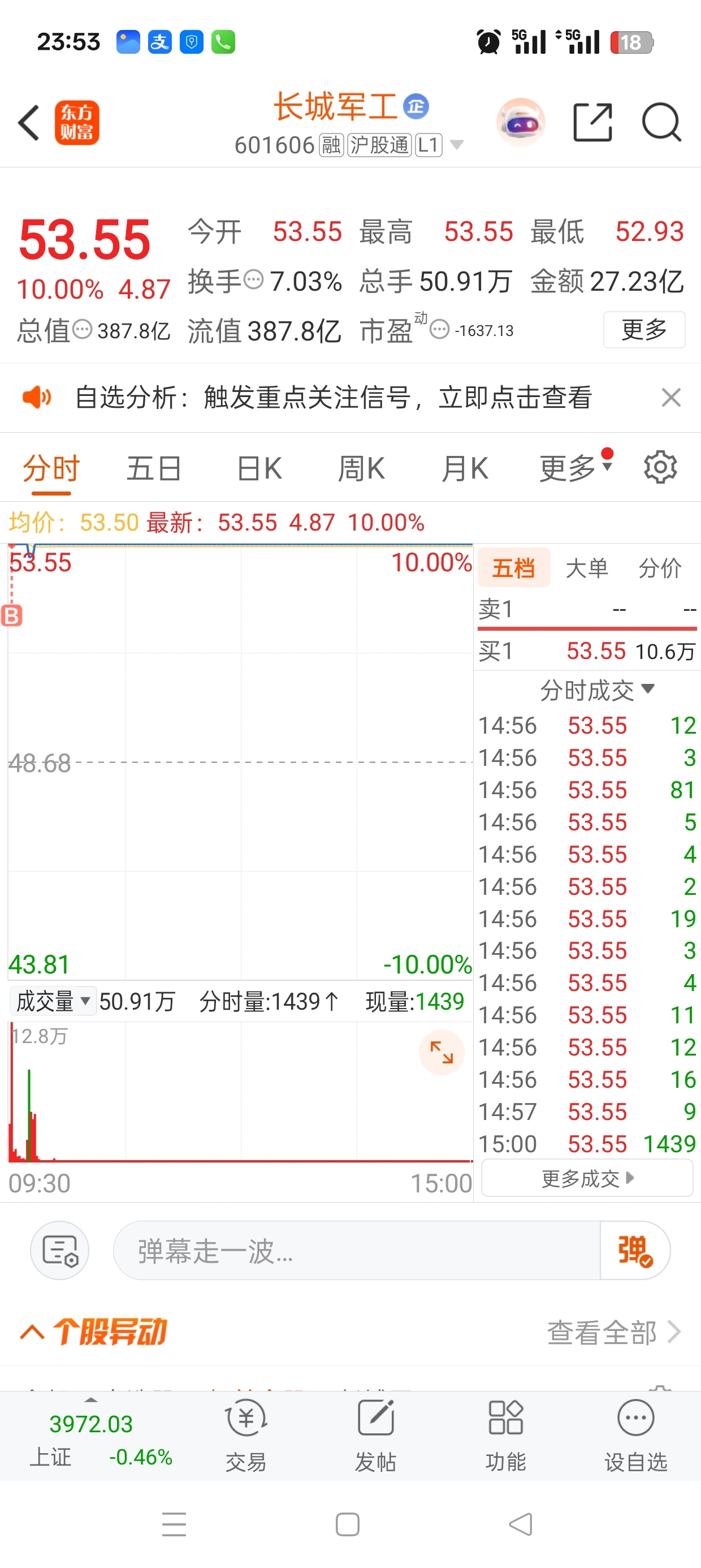 $长城军工(SH601606)$ 竞价买的,军工有利好,只知道要买就买高辨识度的