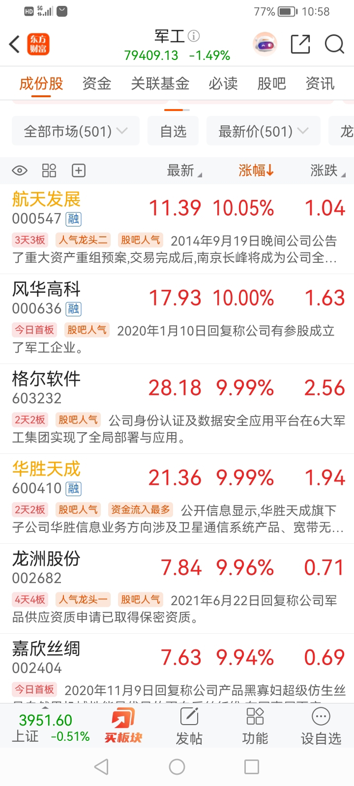 军工板块七个涨停板了,长城军工不是老龙头吗?表现这么差劲!