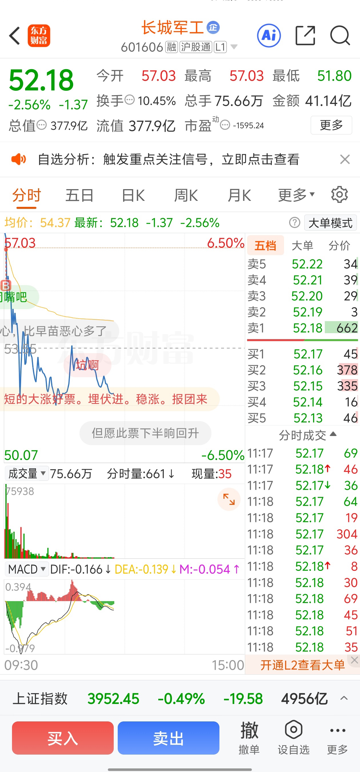 $长城军工(SH601606)$ 还有谁比我惨,一进就吃面