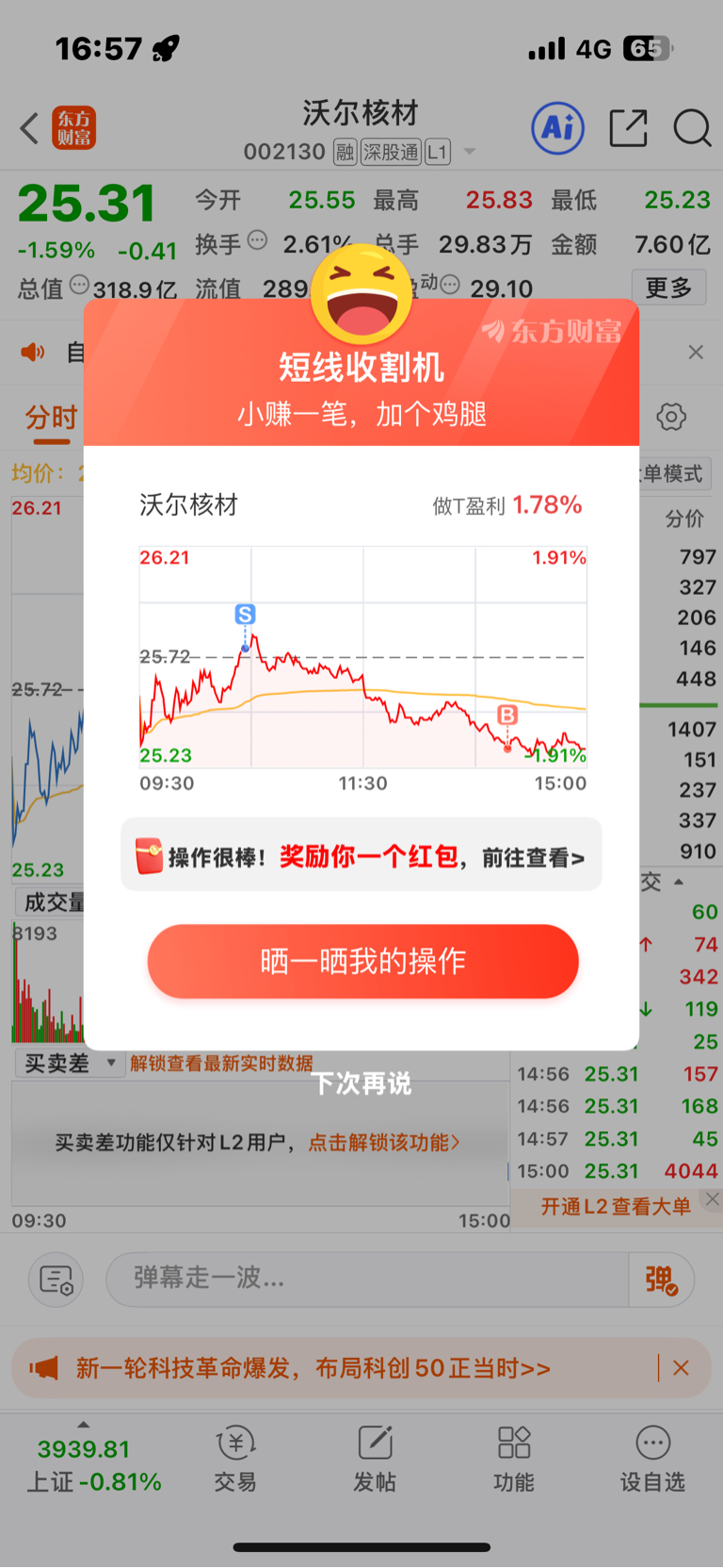 目前持有沃尔核材被套7个点,深圳华强浮盈4个点,长城军工今日清仓盈利7个点