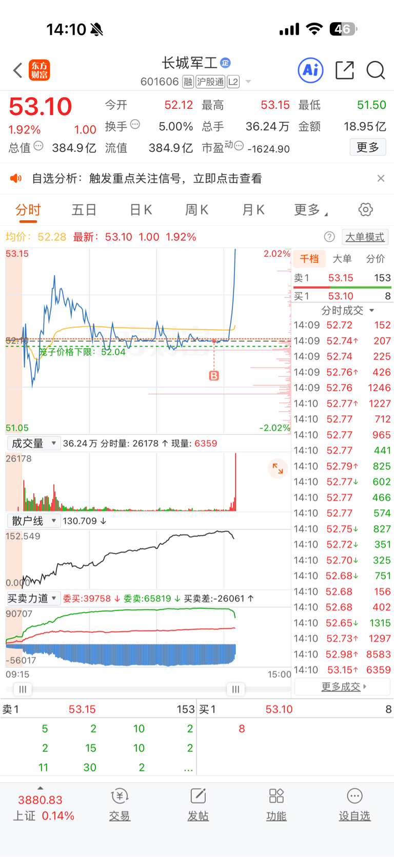 $长城军工(SH601606)$ 刚才睡着了 啥情况 就买了3手 可惜了