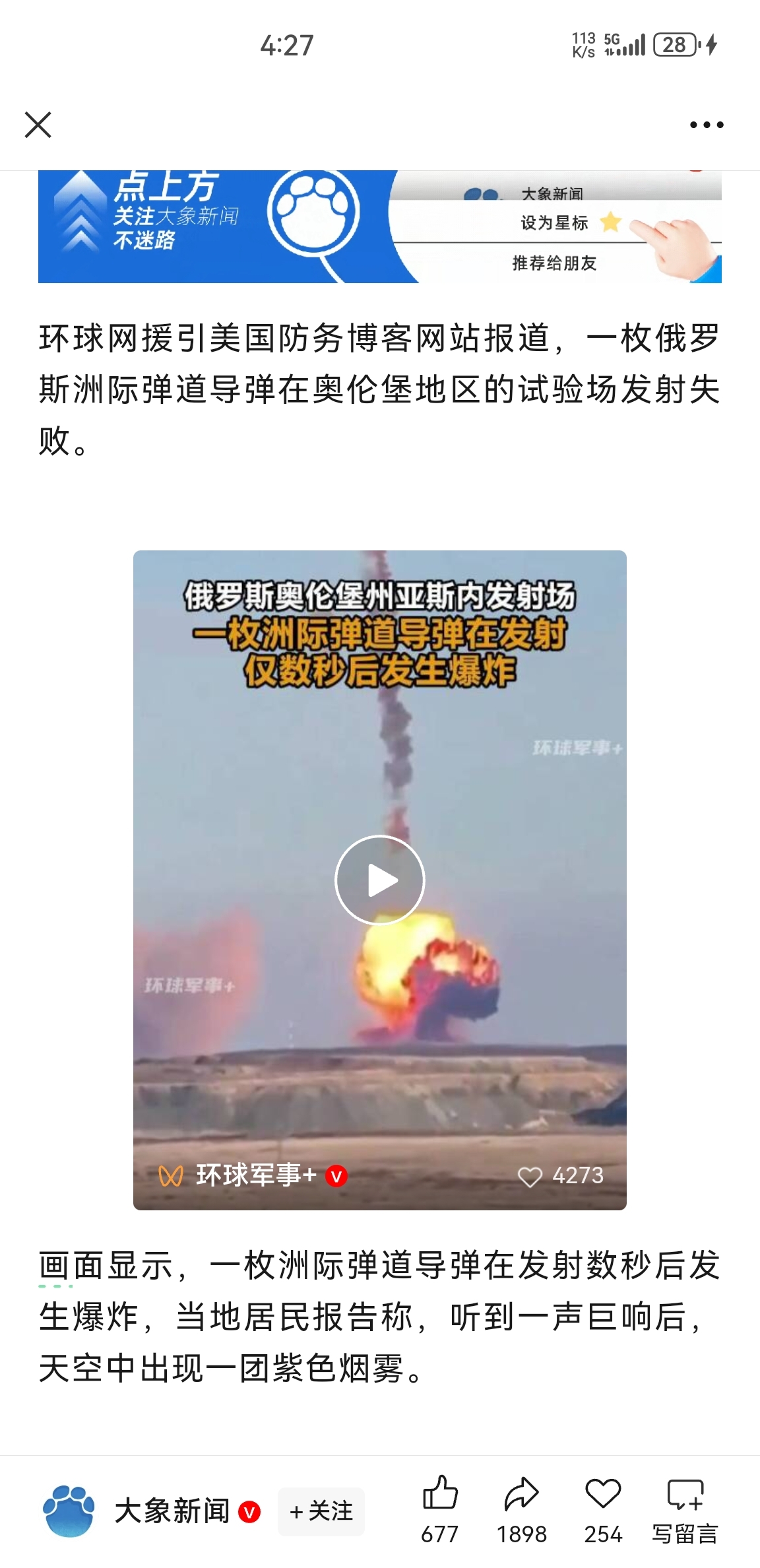 俄罗斯洲际导弹试射失败,周一能不能起来点