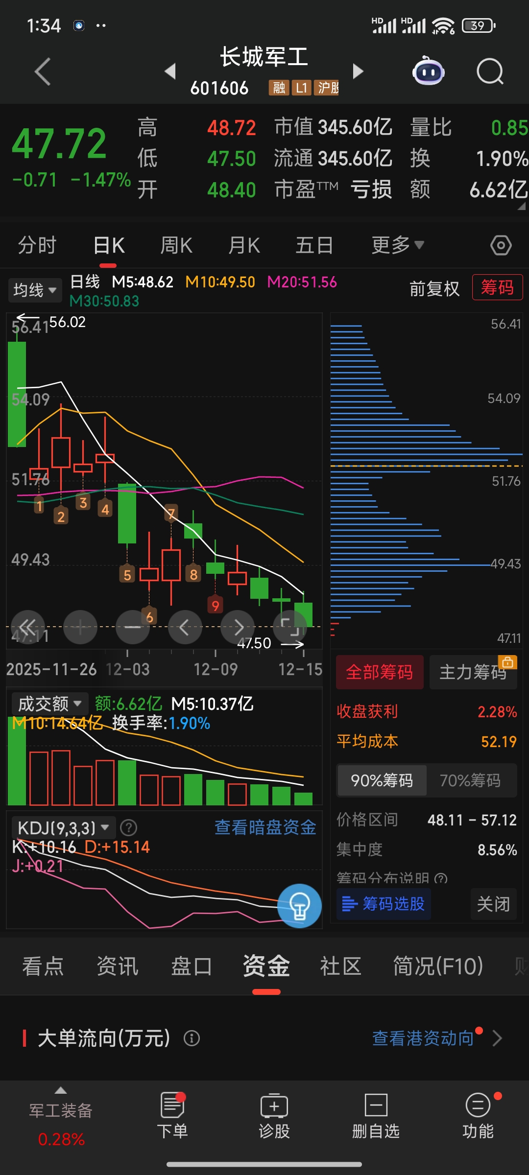 $长城军工(SH601606)$ 全是套牢盘,还玩个锤子