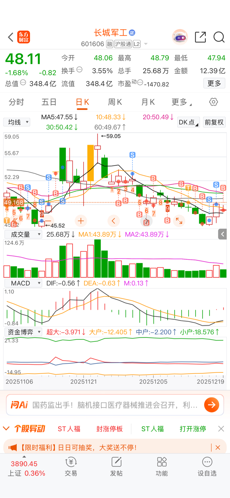 $长城军工(SH601606)$ 看走势,要开始反弹了,拿好,不要动