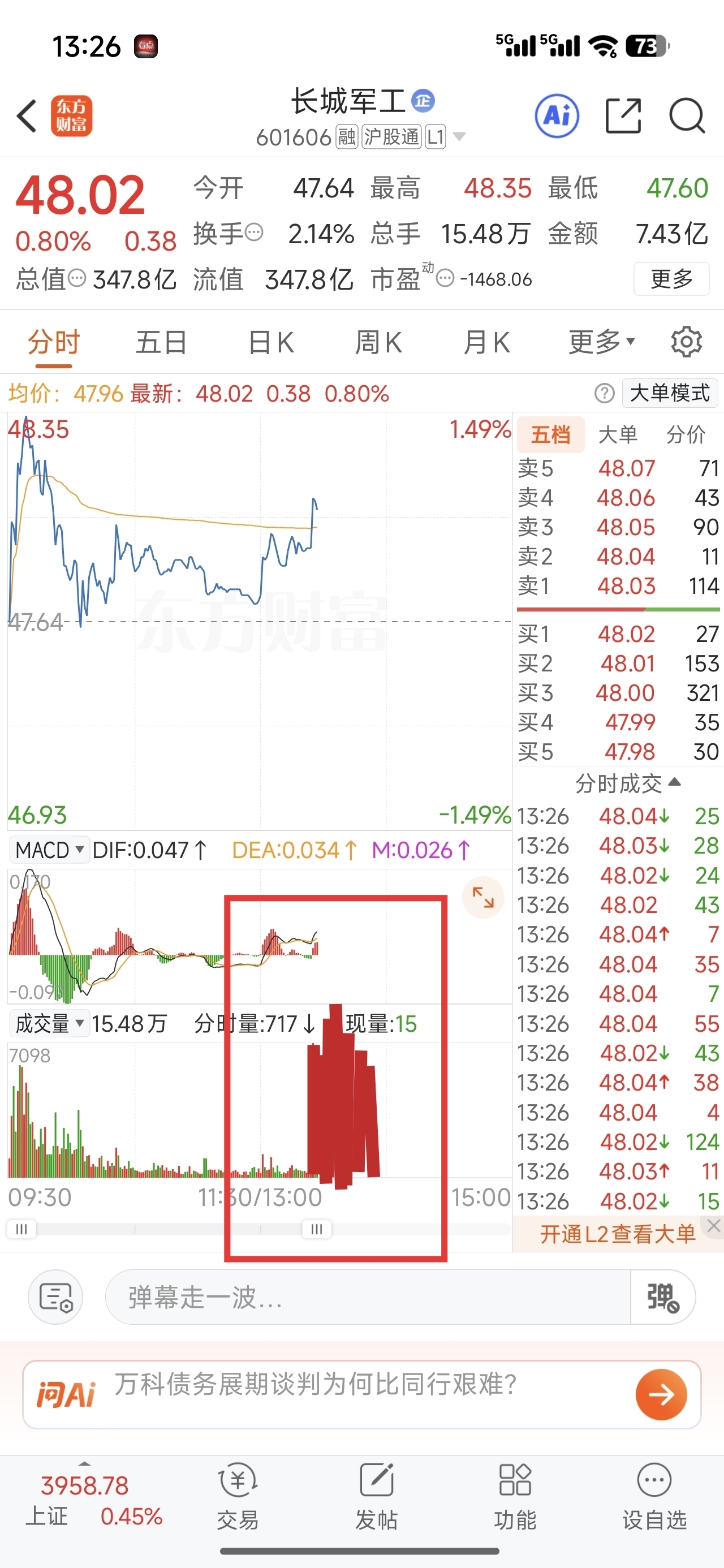 $长城军工(SH601606)$ 这成交量牛逼啊,要张婷了