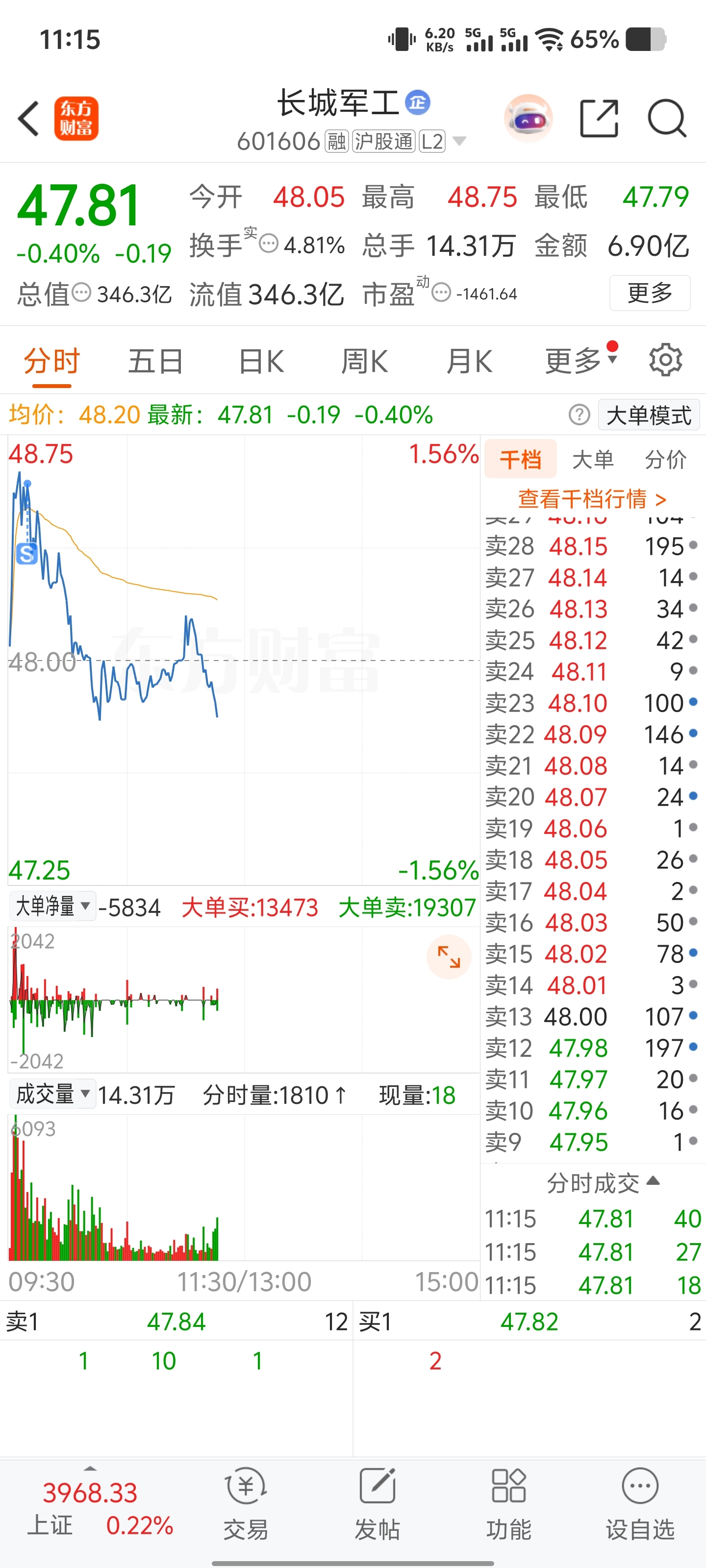 $长城军工(SH601606)$ 跳水都没有什么变化,看来是没有活力了