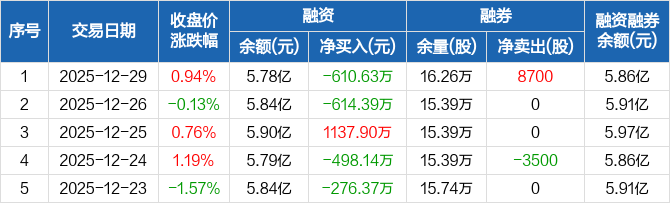 长城军工:融资净偿还610.63万元,融资余额5.78亿元(12-29)