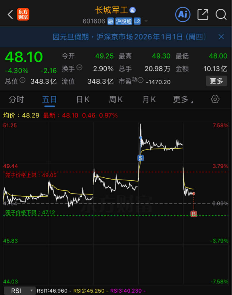 $长城军工(SH601606)$ 五日筹码分布