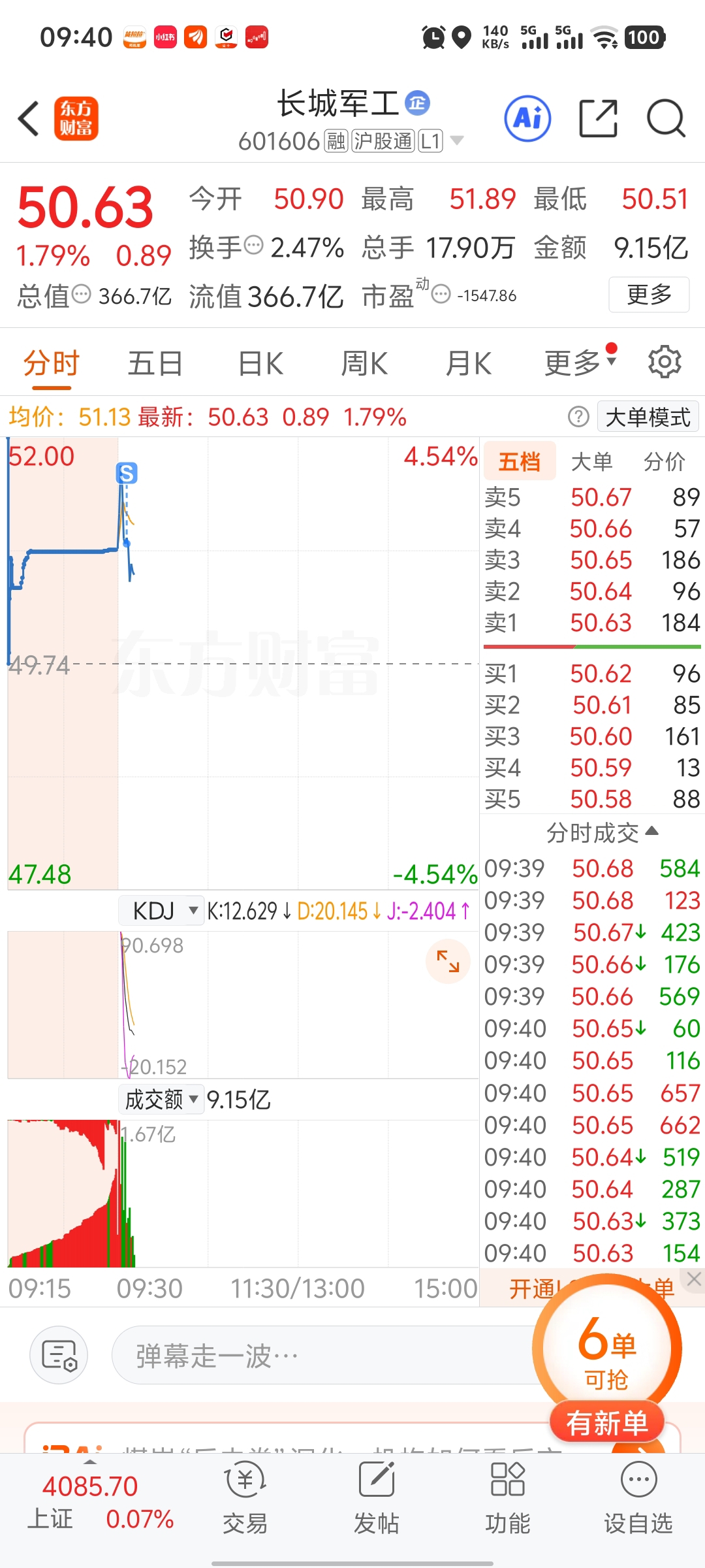 $长城军工(SH601606)$ 一直出货,昨天北方长龙和长城军工选了你,真是牛