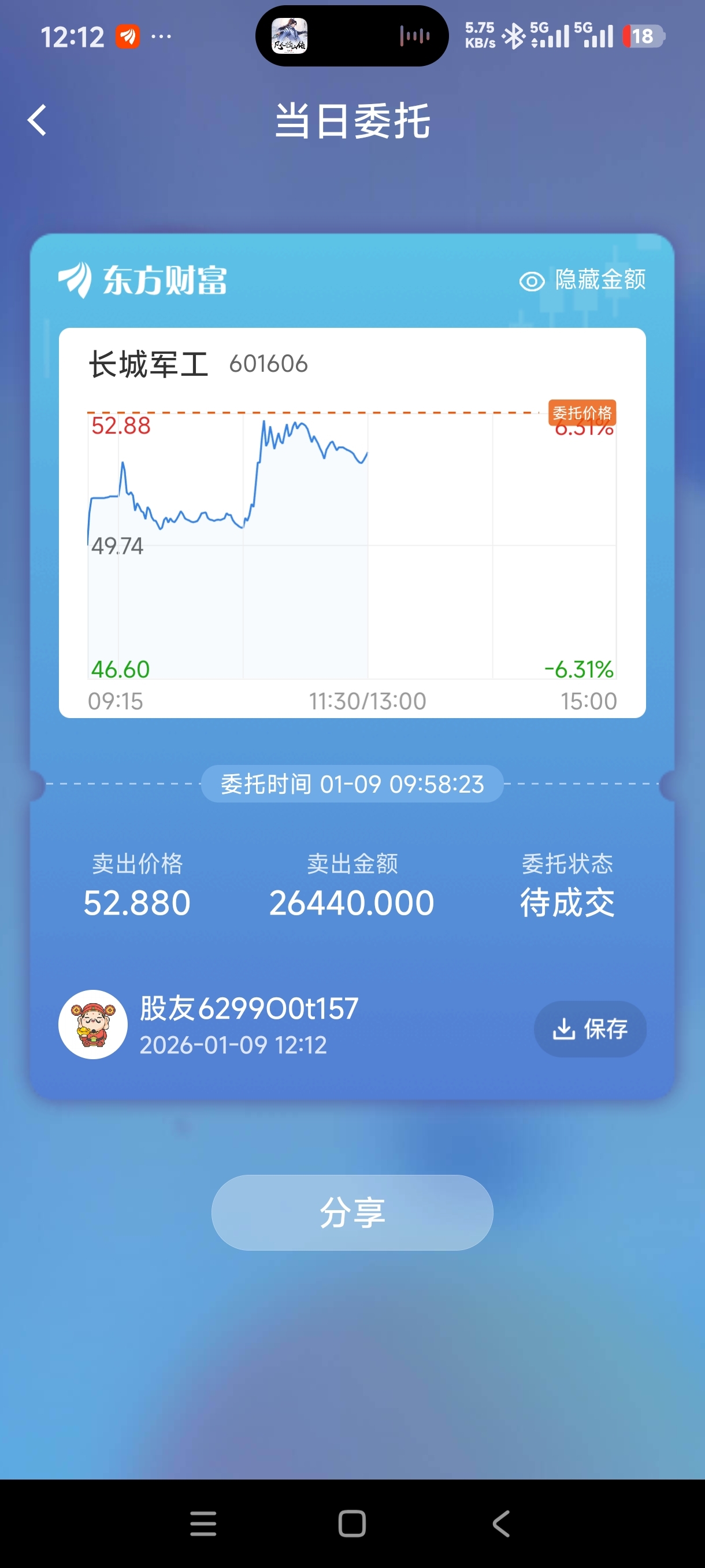 $长城军工(SH601606)$ 差一分