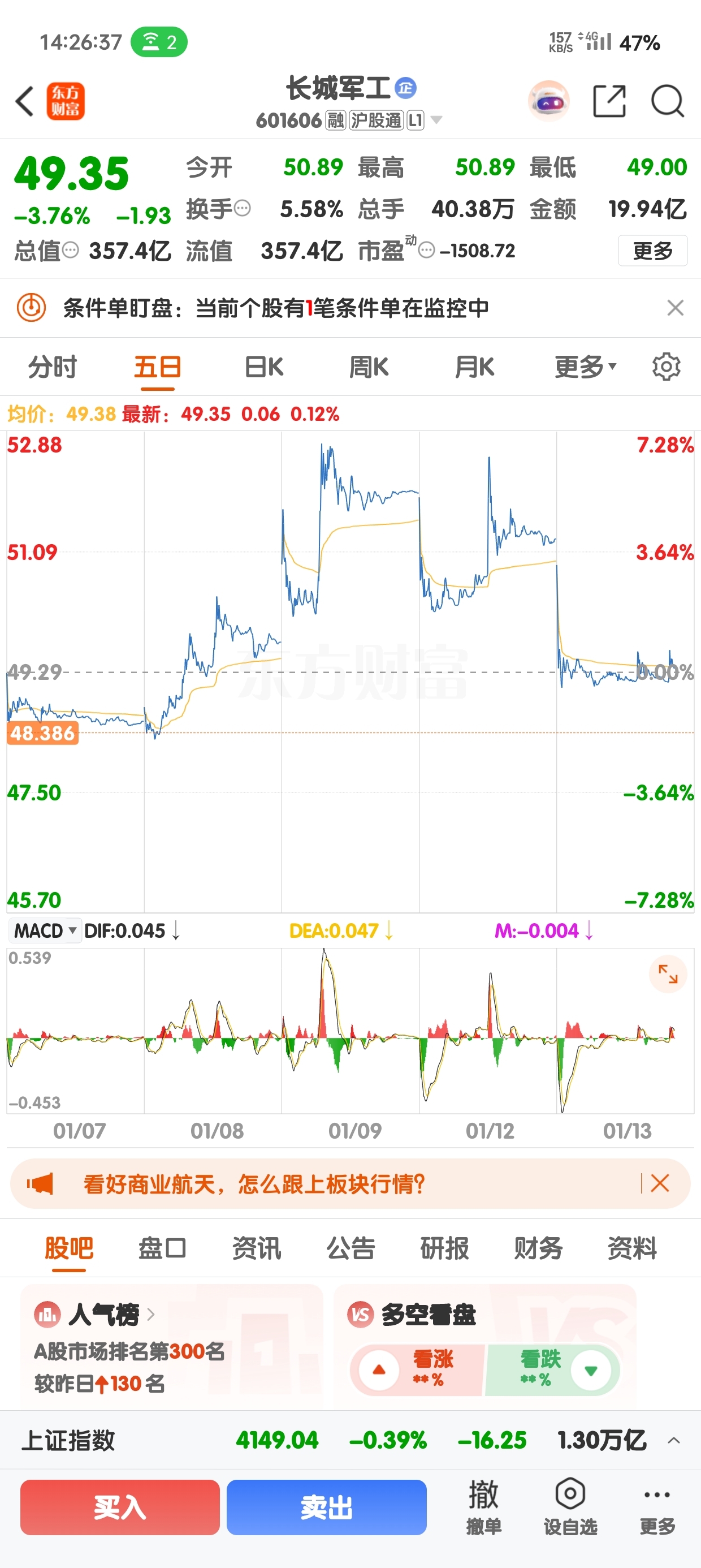 $长城军工(SH601606)$ 明天还有一条瀑布