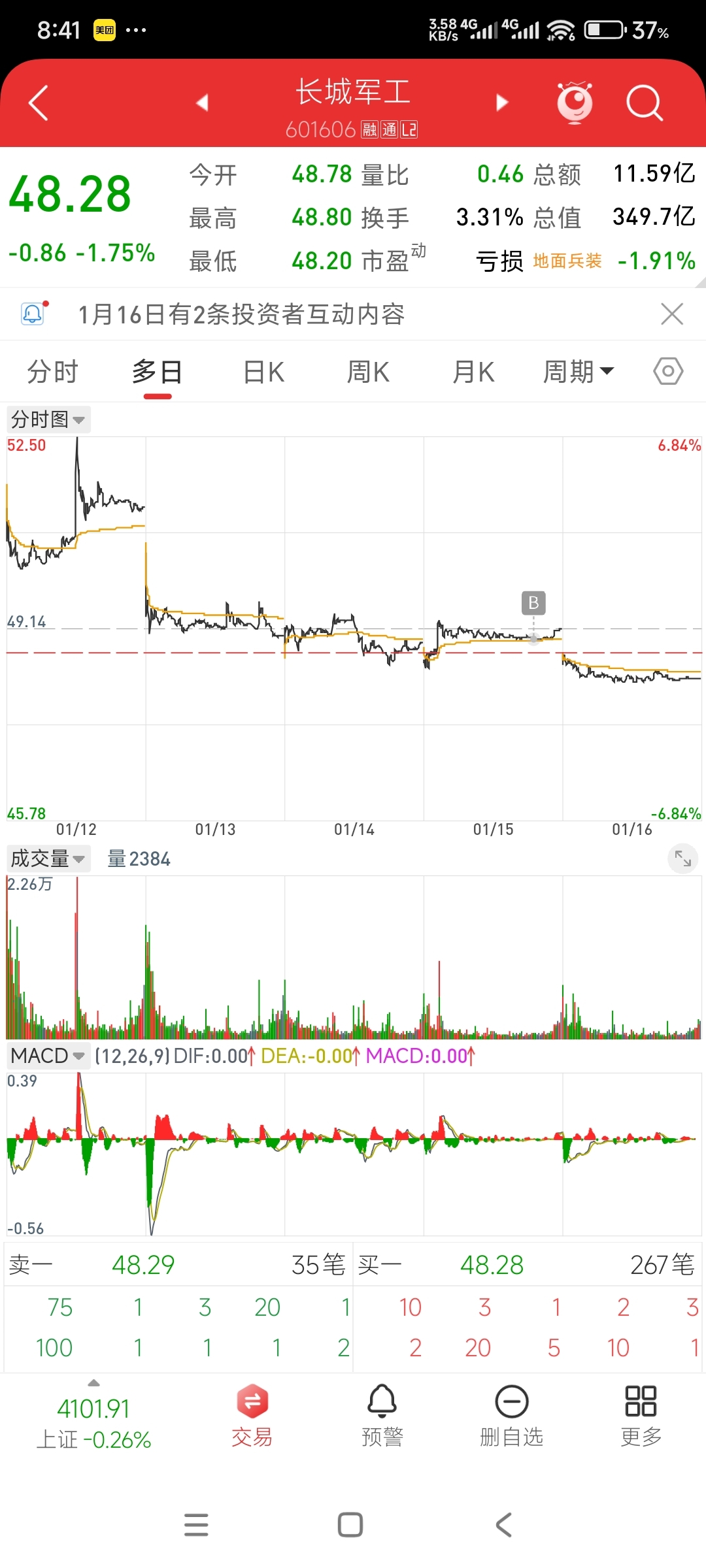 $长城军工(SH601606)$ 兄弟们,对不住了,买了100股把股价买崩了