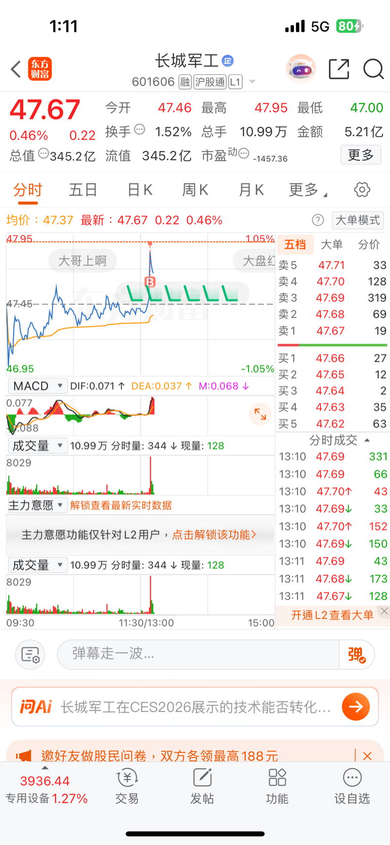 $长城军工(SH601606)$ 我就是个
