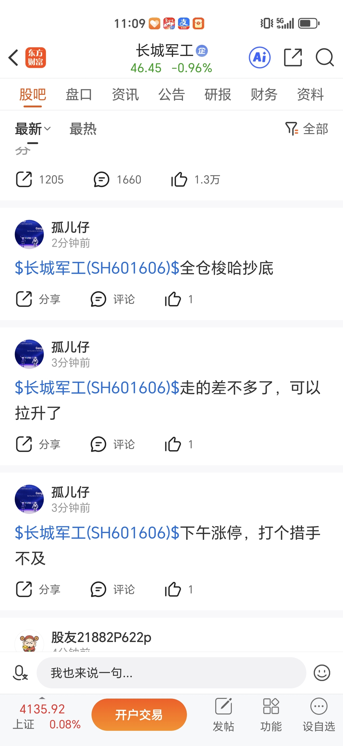 $长城军工(SH601606)$ 这个人估计和他昵称一样,无付无目的扎钟