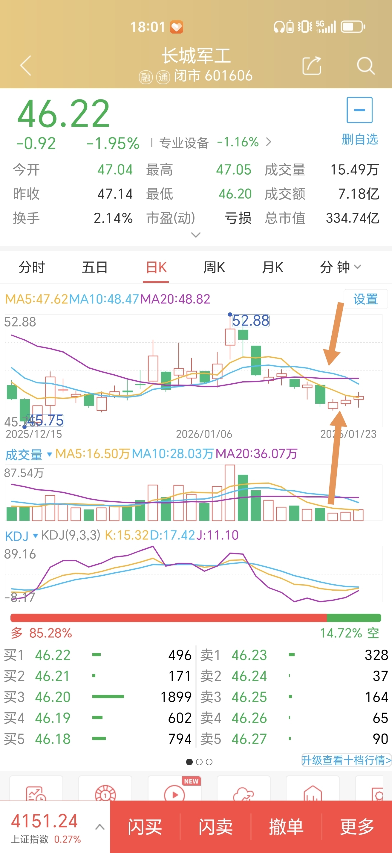 $长城军工(SH601606)$ 看好了,三阳不过阴,明天还是跌,钝刀割肉已经割了我10个点了,买了这个杂毛股。