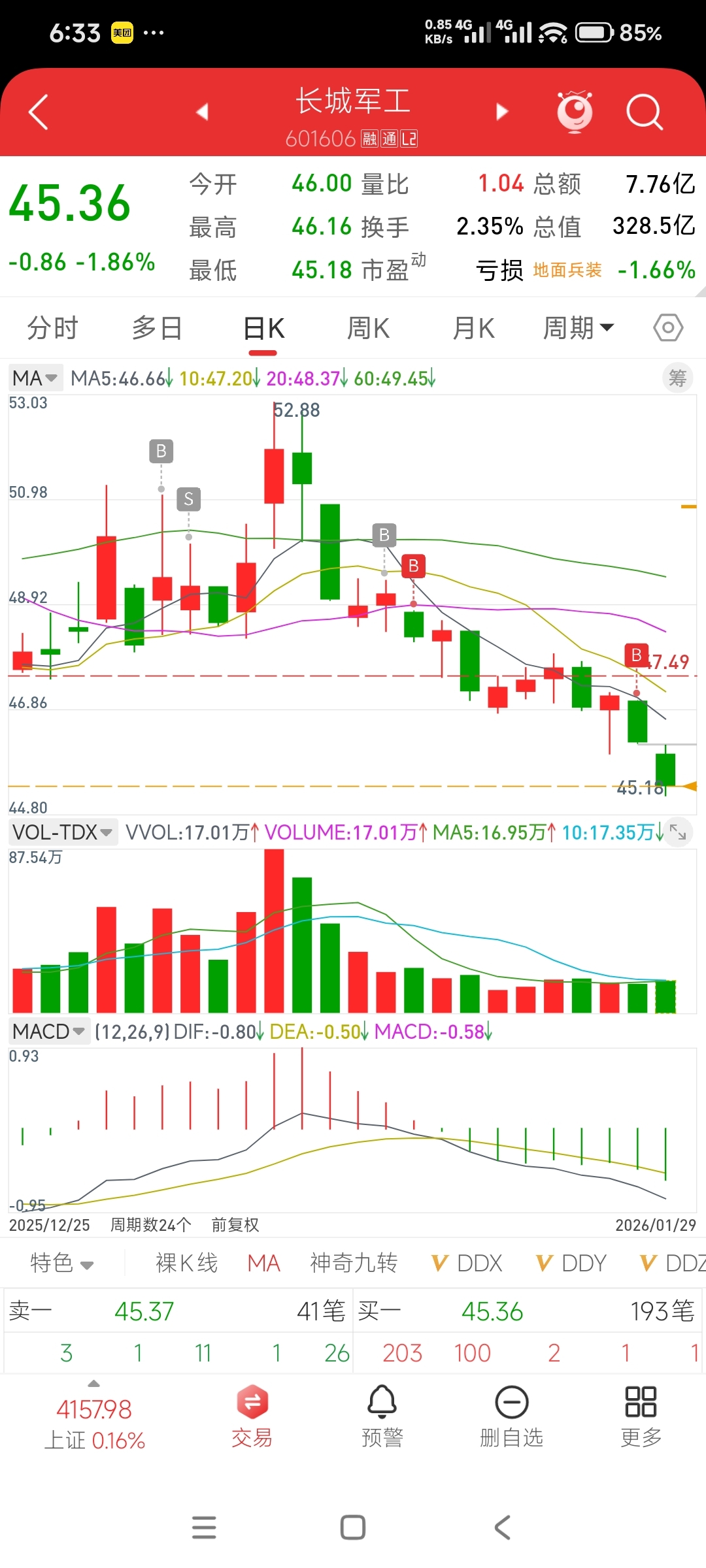 $长城军工(SH601606)$ 目前手头400股,亏损1000块钱