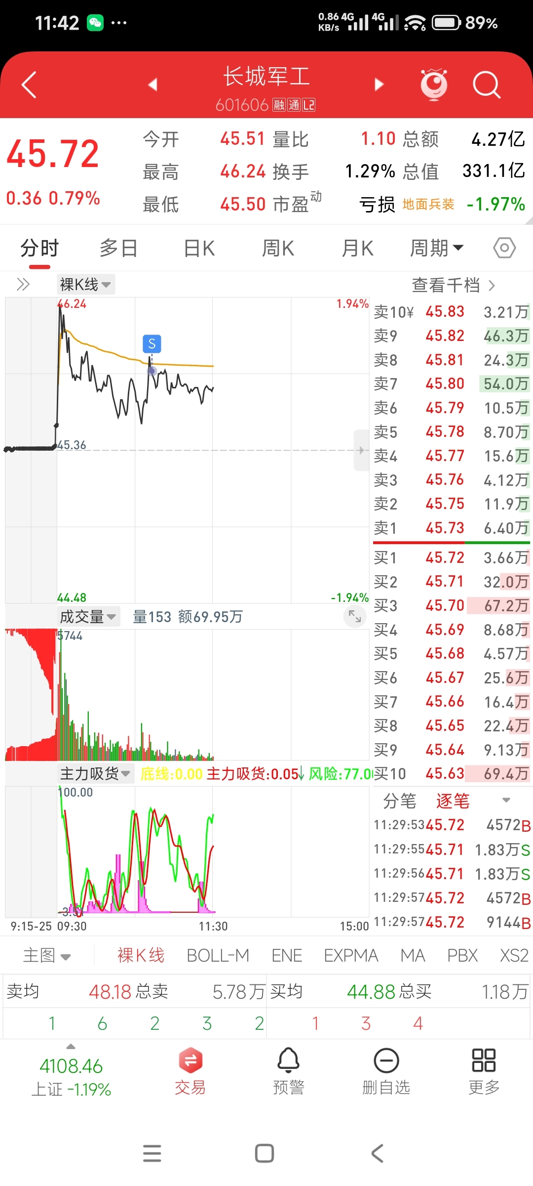 $长城军工(SH601606)$ 主力,估摸着你天天惦记着我这400股,还你了,祝留下的兄弟发财