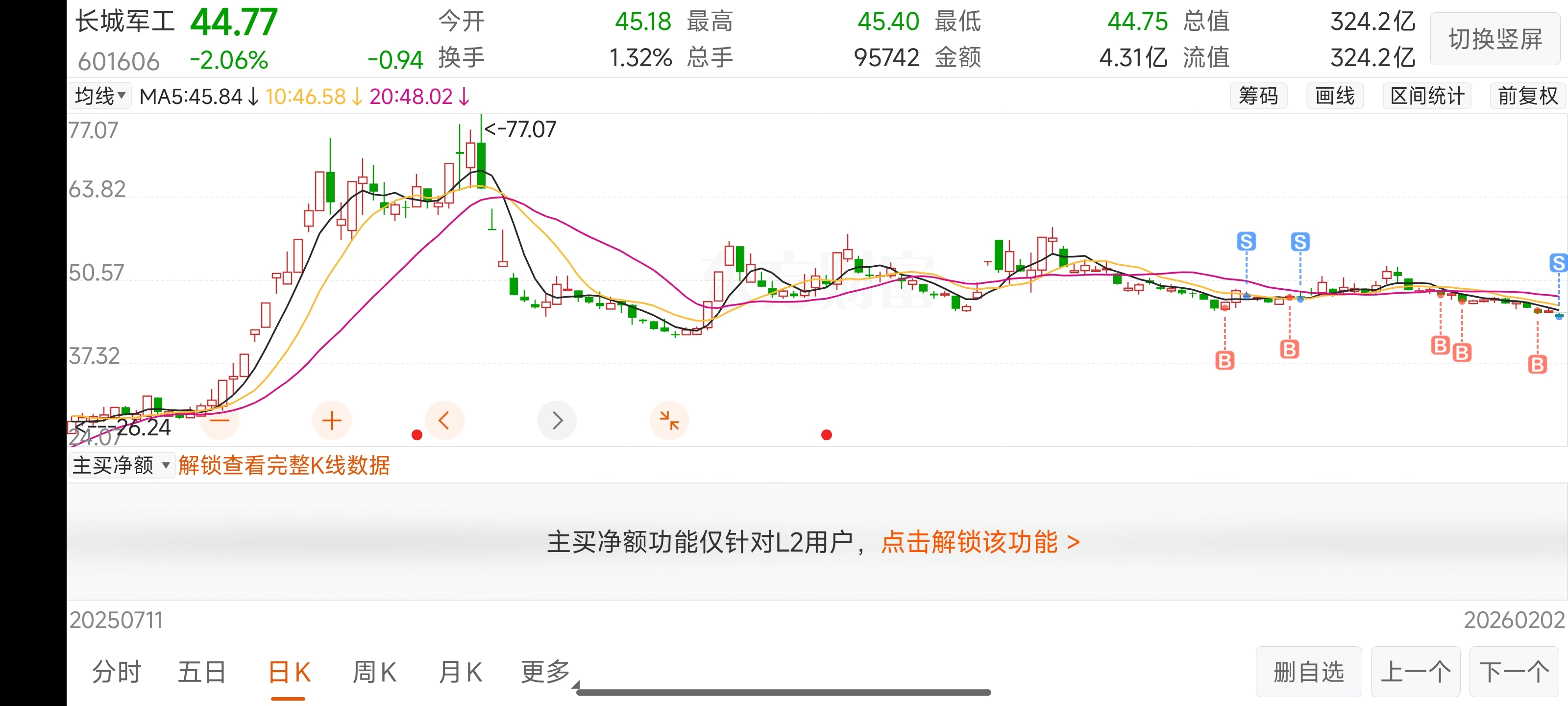$长城军工(SH601606)$ 清仓了,48.5一直补,这支股票已经下跌无底了,挨打要立正,赶紧跑吧还在里面的人。