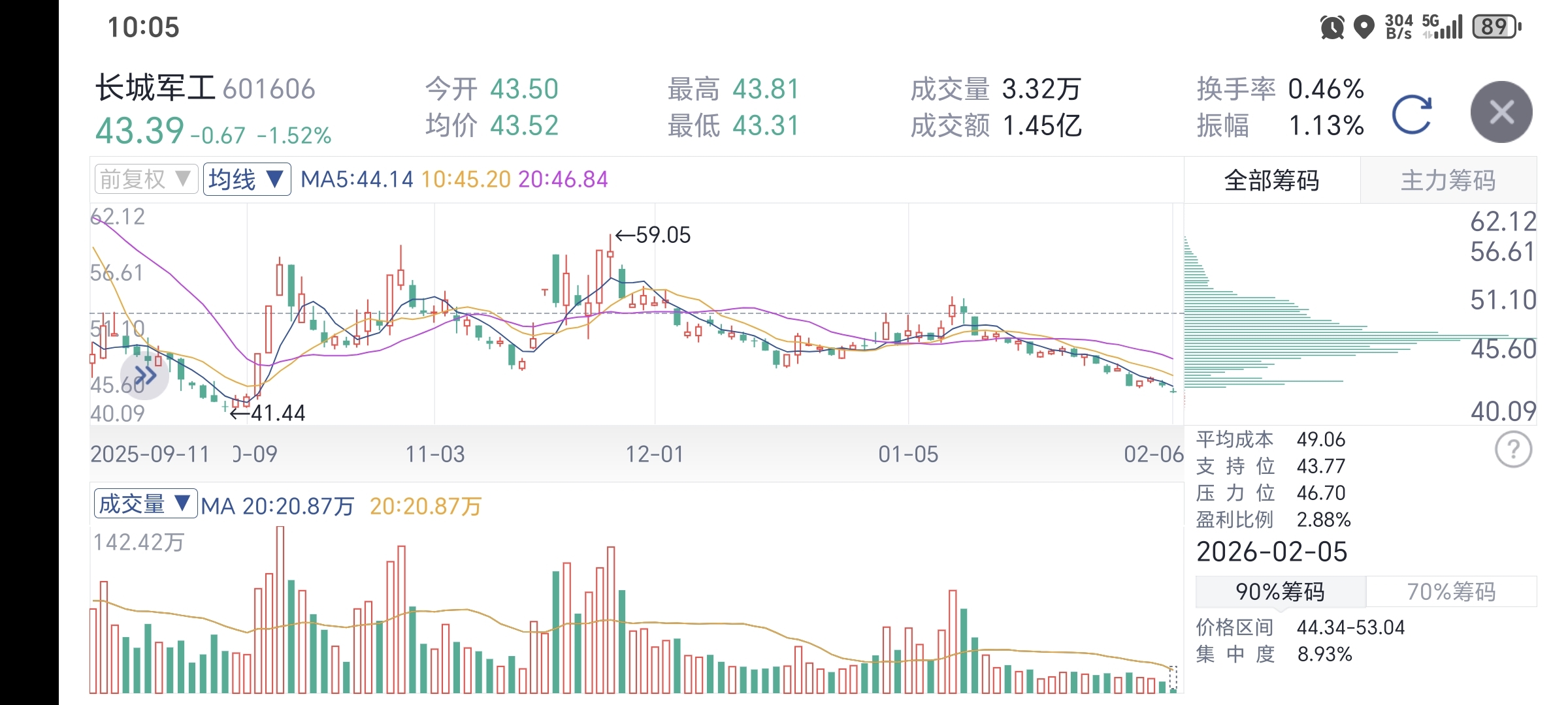 $长城军工(SH601606)$ 还能跌哪去