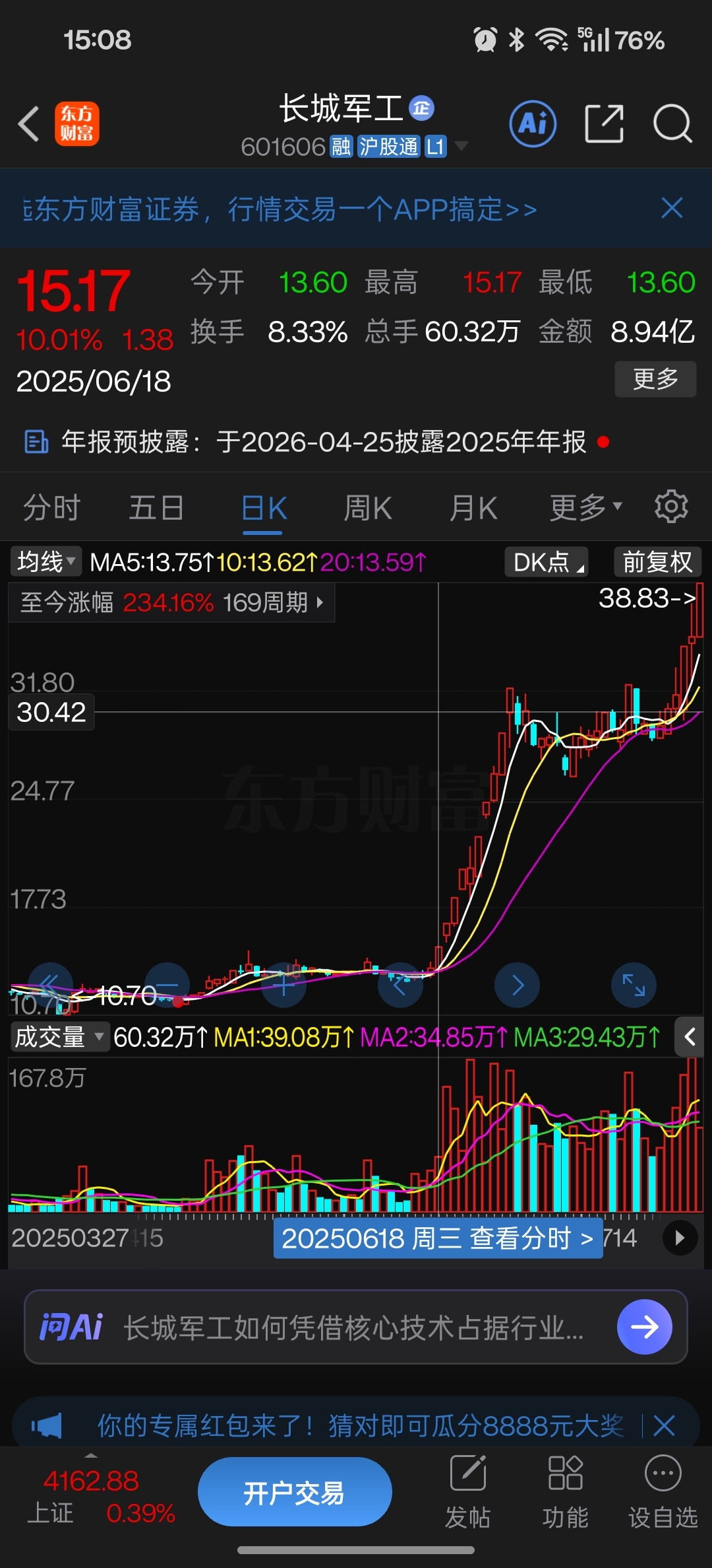 $长城军工(SH601606)$ 去年6月12号,以伊开搞,先拉的石油,18号开始,长城开始波浪壮阔的连板。