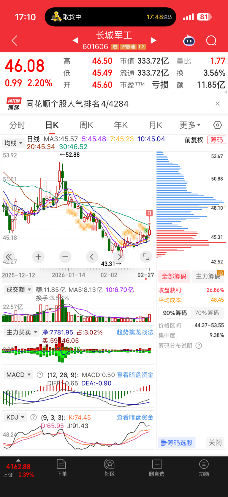 $长城军工(SH601606)$ 周五财神爷一直抓着我的手让我买这个