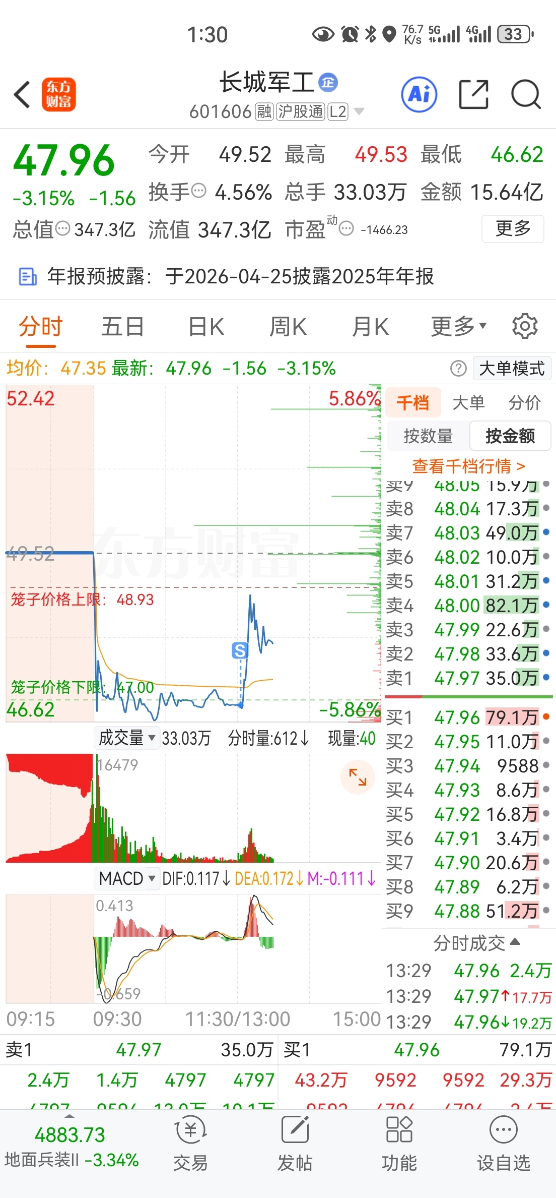 $长城军工(SH601606)$ 它是咋知道我要卖的?