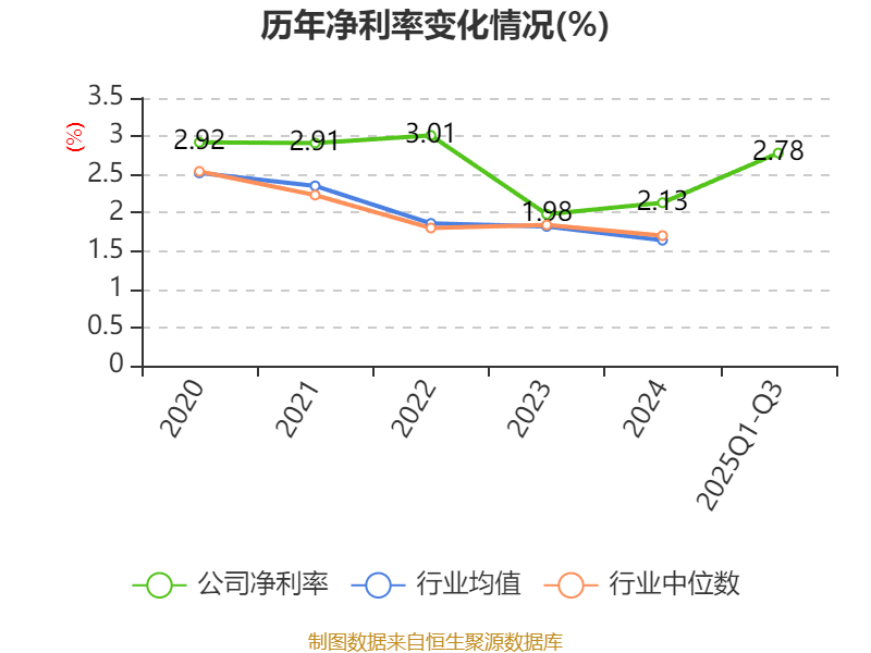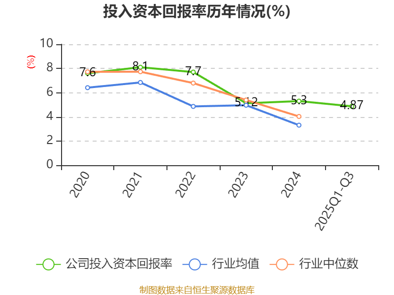 盈利能力方面, 2025年前三季度公司加权平均净资产收益率为6.96%,同比上升1.22个百分点。公司2025年前三季度投入资本回报率为4.87%,较上年同期上升0.4个百分点。