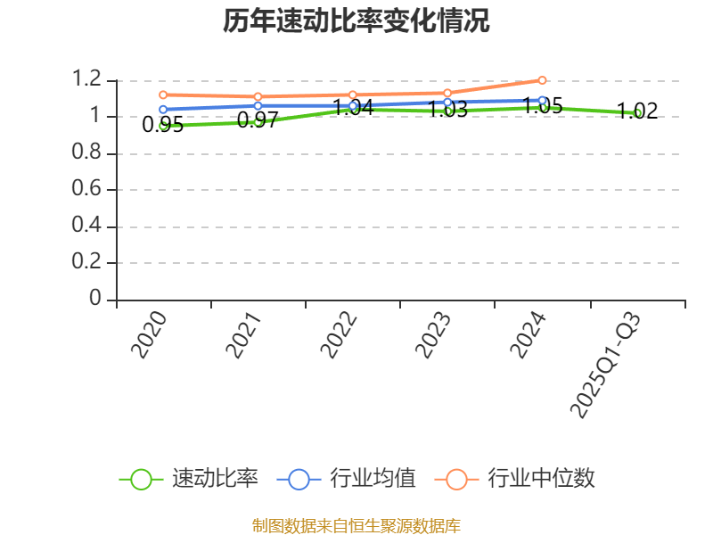2025年前三季度,公司流动比率为1.32,速动比率为1.02。