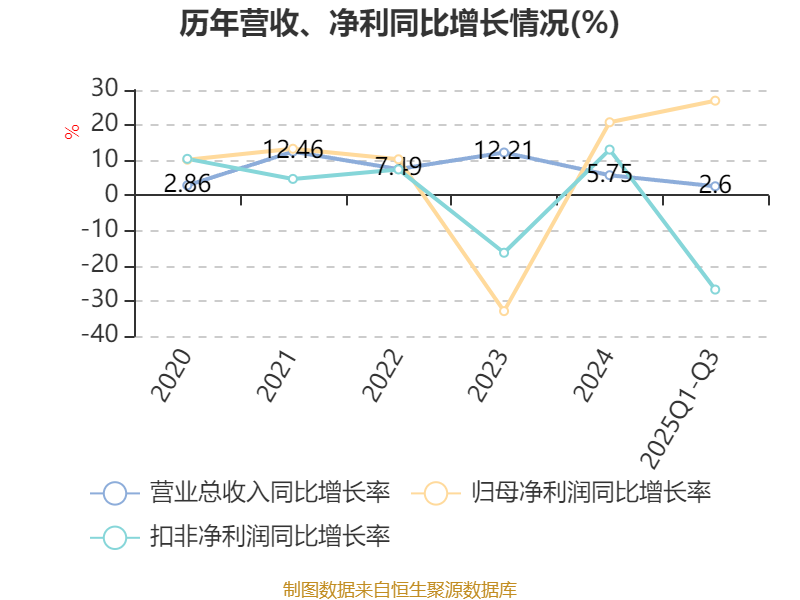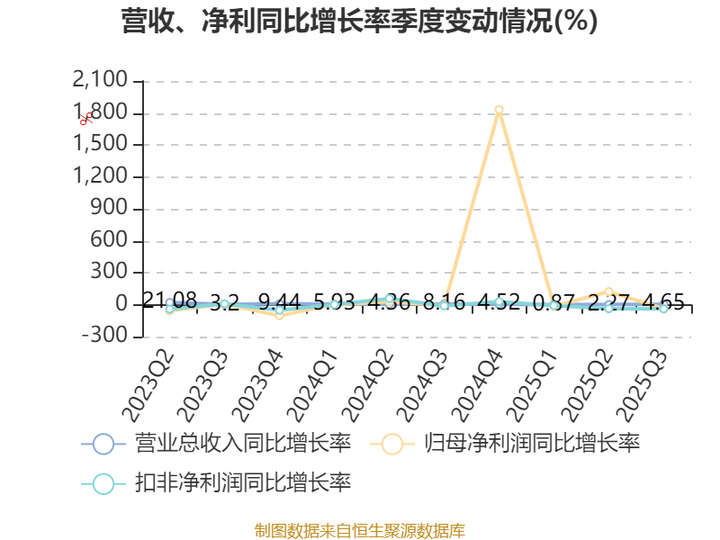 资产重大变化方面,截至2025年三季度末,公司应收票据及应收账款较上年末增加11.96%,占公司总资产比重上升1.67个百分点;无形资产较上年末增加59.12%,占公司总资产比重上升1.24个百分点;长期股权投资较上年末减少12.92%,占公司总资产比重下降0.68个百分点;货币资金较上年末增加2.76%,占公司总资产比重下降0.64个百分点。