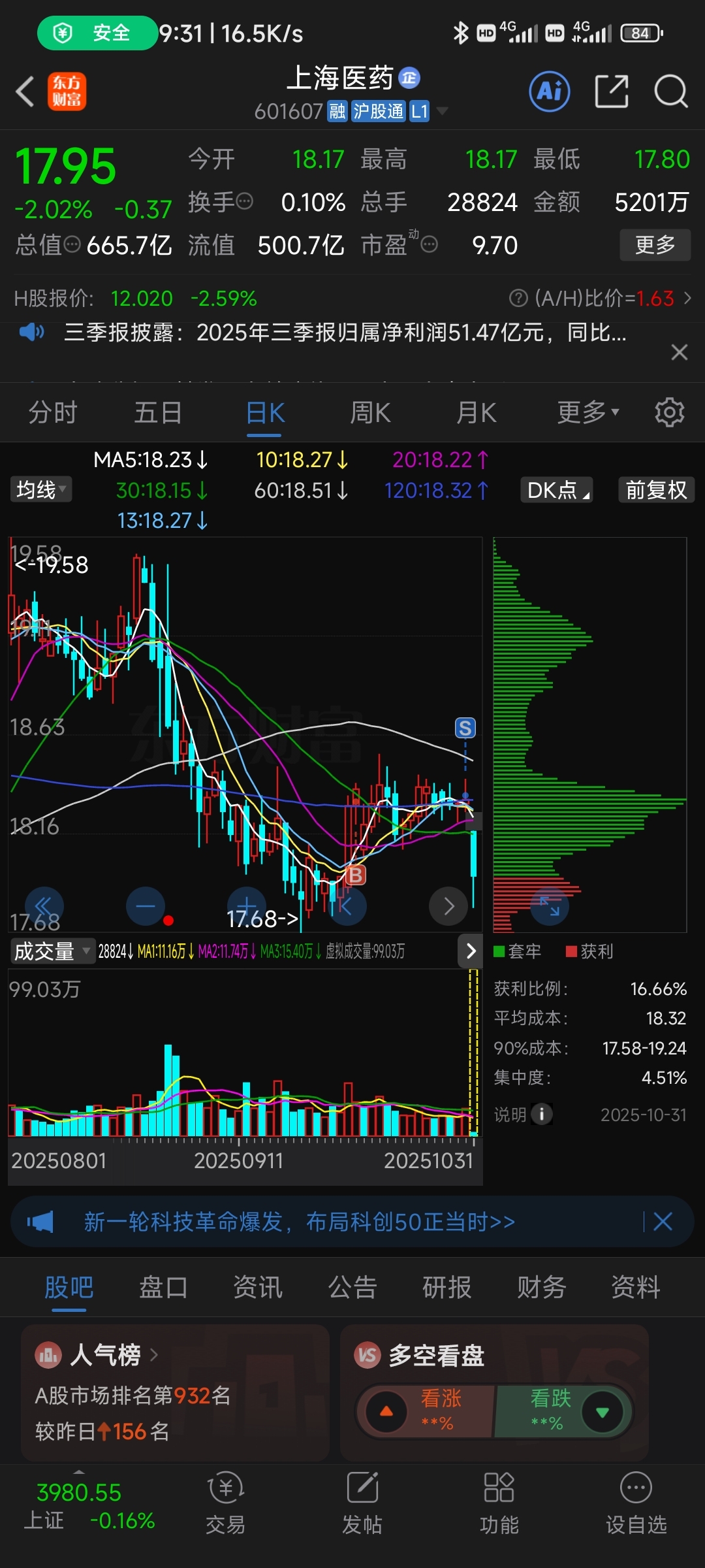 $上海医药(SH601607)$ 吓死了,还好跑路了