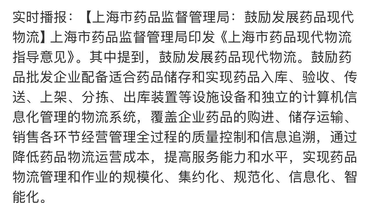 $上海医药(SH601607)$ 鼓励发展药品现代物流