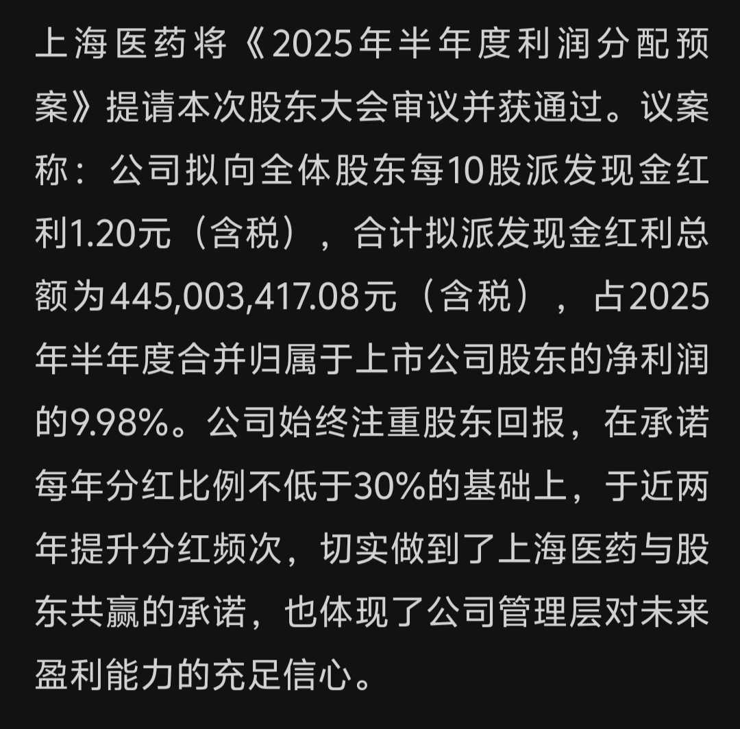上海医药:每股分红0.12元人民币;除净日2025-12-29;派息日2025-12-30。