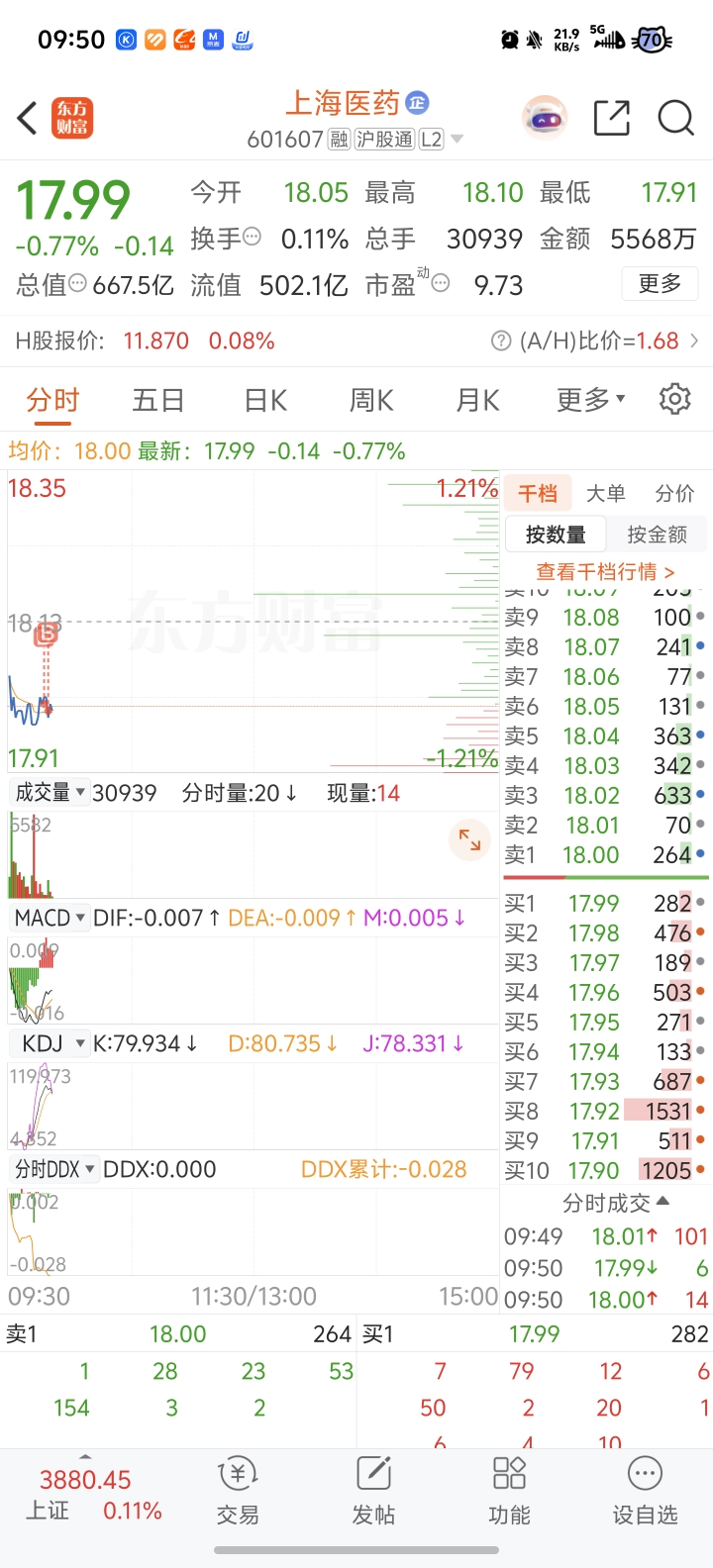 $上海医药(SH601607)$ 抄着底了嘛?