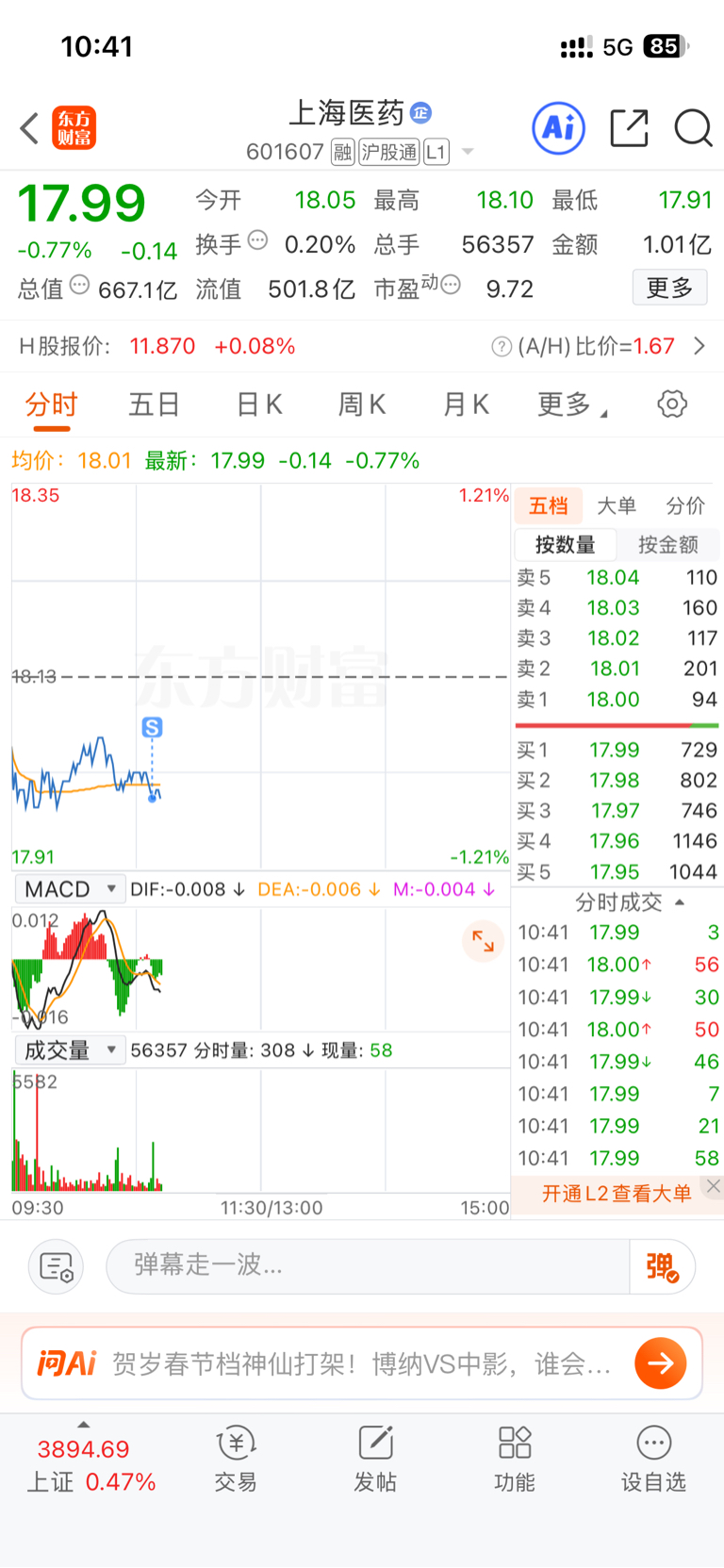 $上海医药(SH601607)$ 丢你m啊 删自选,忍不住了!