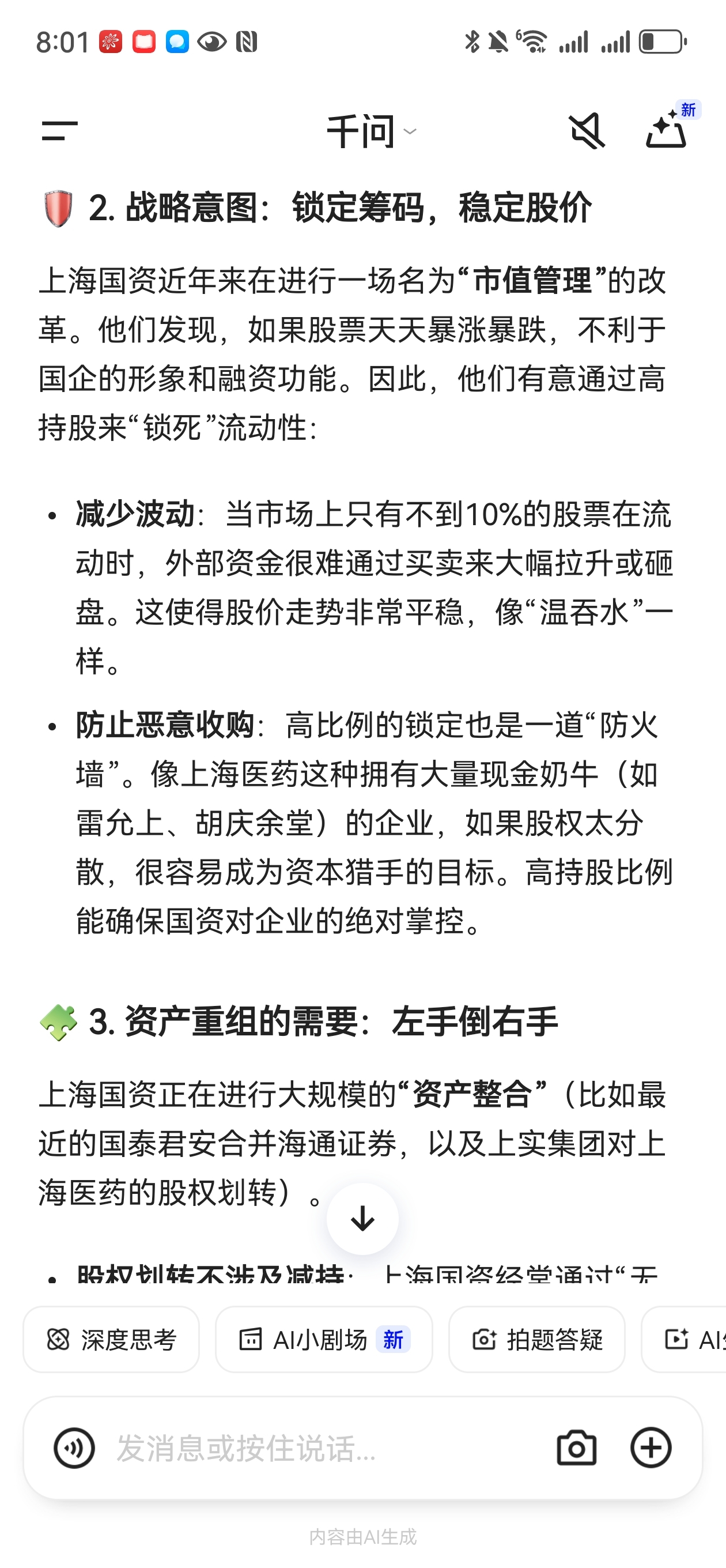$上海医药(SH601607)$ 以后买股一定要看股东结构分析上市公司的战略意图。这股80%多的筹码在10大股东手里,股价市值稳定在低位区间波动,外面的资金想要去做多也会被无情覆灭,各位股东股价有冲高就走吧,不要死脑筋在用价值投资给自己洗脑自我感动了,这个市场往往看起来越安全的标的越是恶心越是危险,往往看起来越是危险的地方往往才是安全的痛快的能吃肉的。