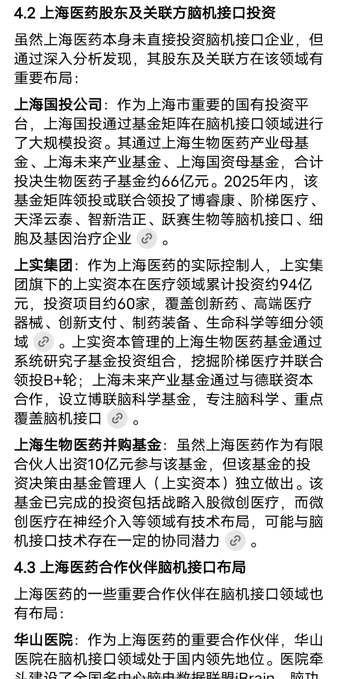 上海医药脑机接口早已布局,合作的等成熟了就直接并购就行。