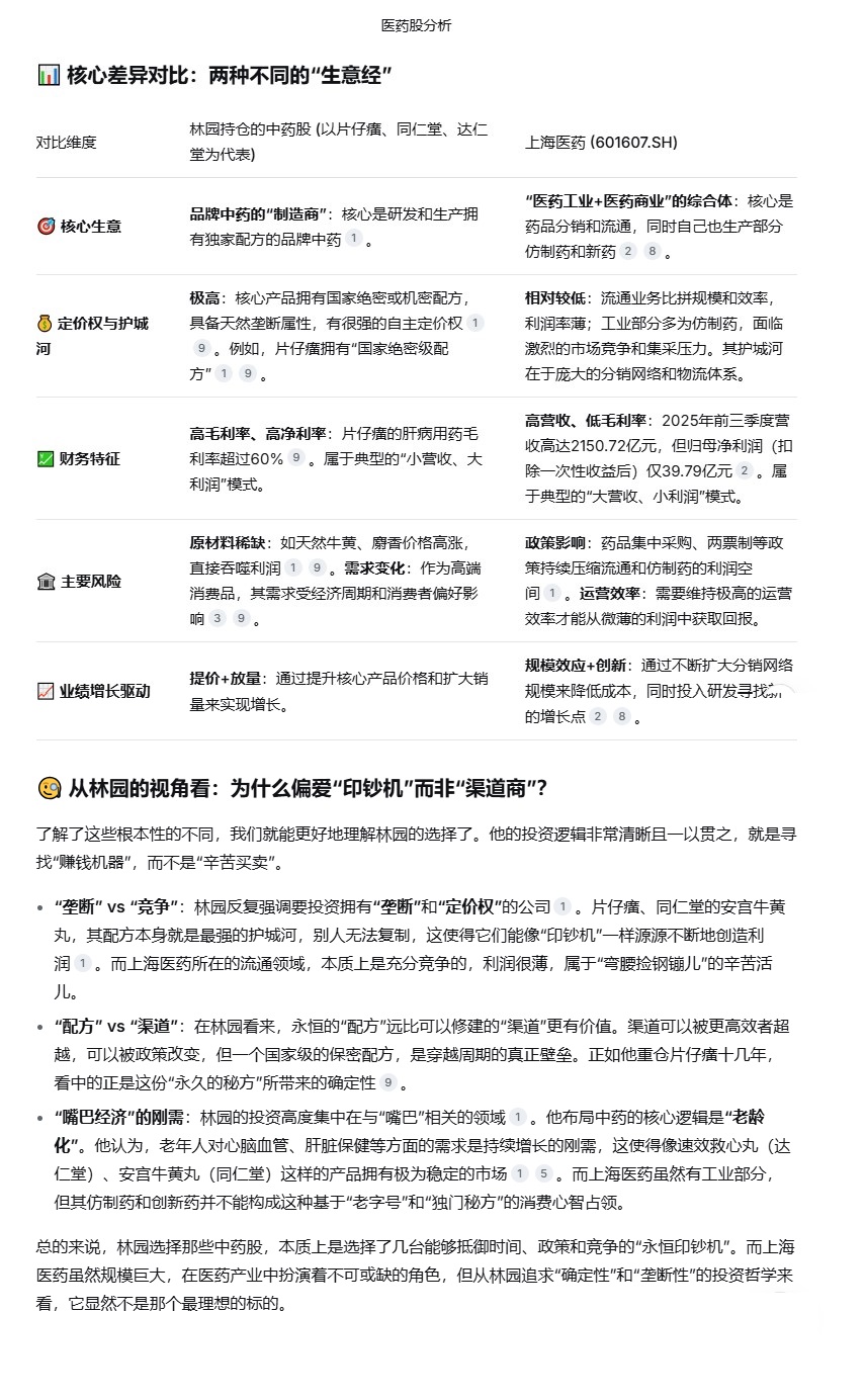 上海医药与林园医药股对比分析