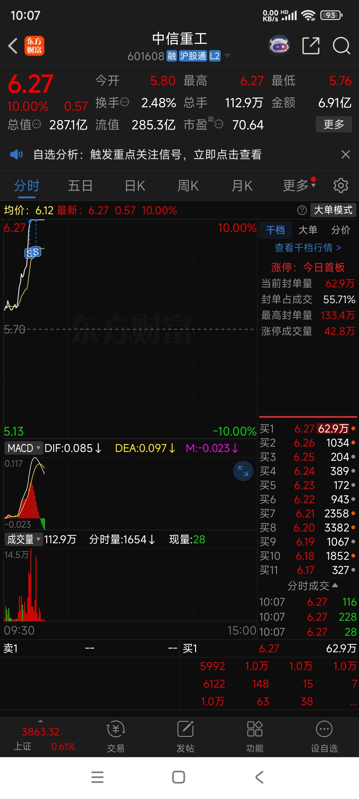 $中信重工(SH601608)$ 被洗出去了,看见破板清仓了