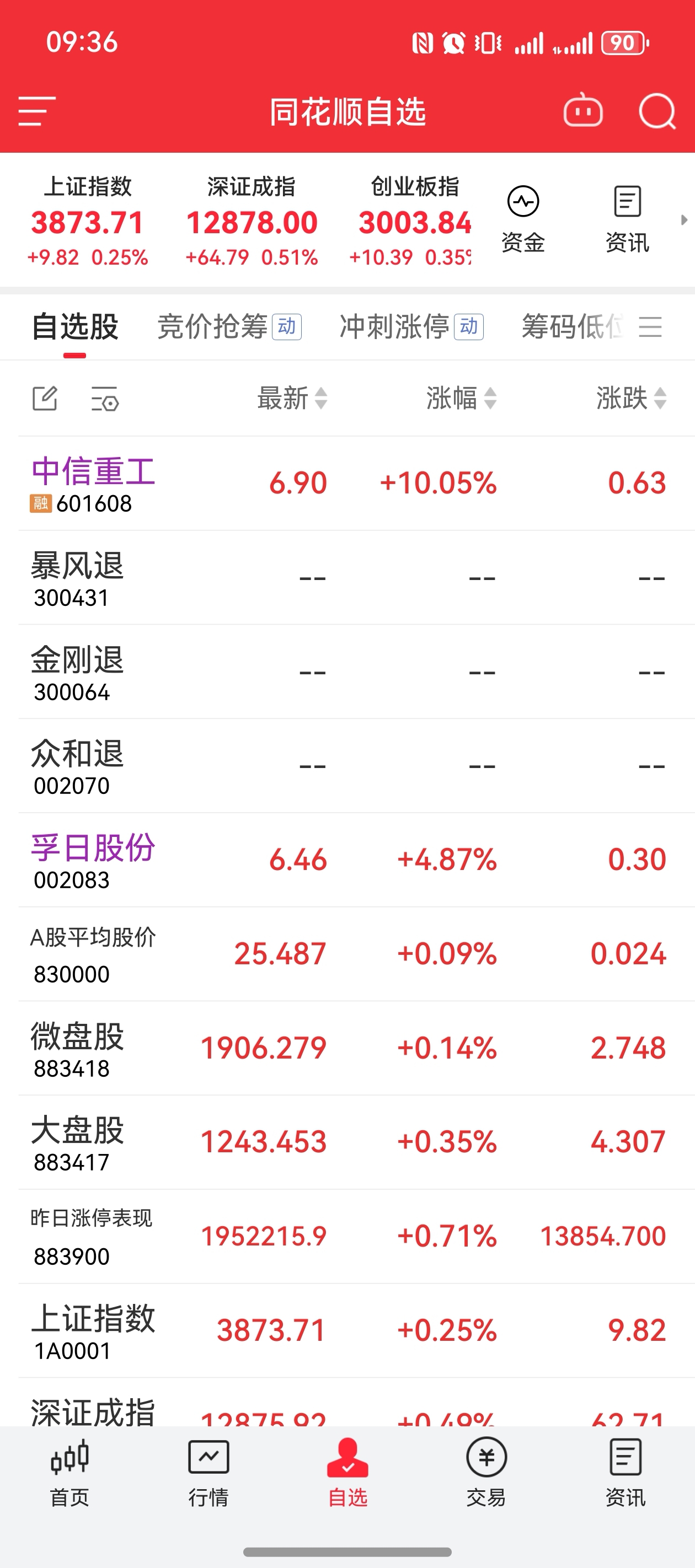 10月21日9点28分;1.全仓机器人中信重工。2.单点2天的孚日股份,止盈,或
