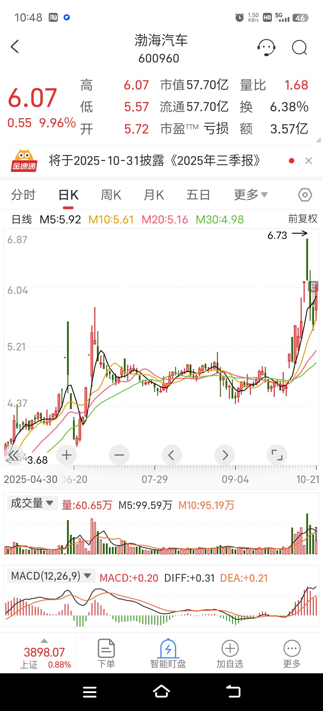 $中信重工(SH601608)$ 渤海汽车昨日5.5介入也预判到今天的涨停了,继续看好继续持有。中信重工昨晚的深海经济,今天早盘6.52追高了但也收获一个涨停。中午准备再逮只涨停,后面加油。