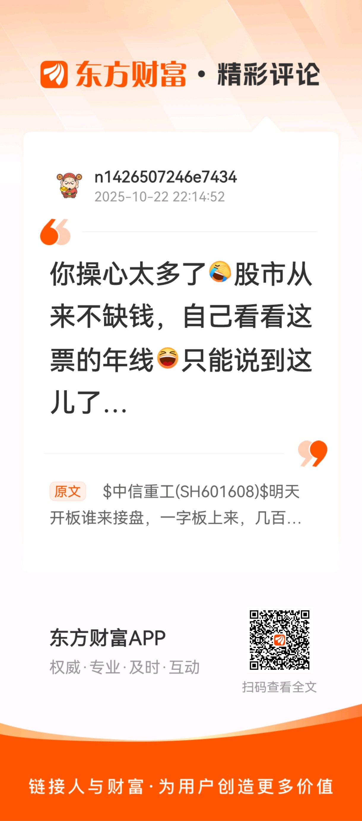 $中信重工(SH601608)$ 挂,每个帖子下面都可以看到这个在唱空