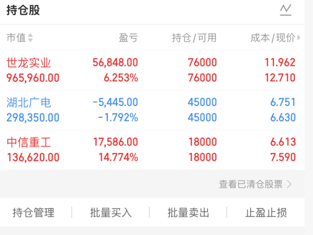 $中信重工(SH601608)$$盈新发展(SZ000620)$$贝肯能源(SZ002828)$//@是念茜啊 :太厉害了,一天3个10cm到嘴,每天都能吃涨停,超级牛B, 真心佩服!!