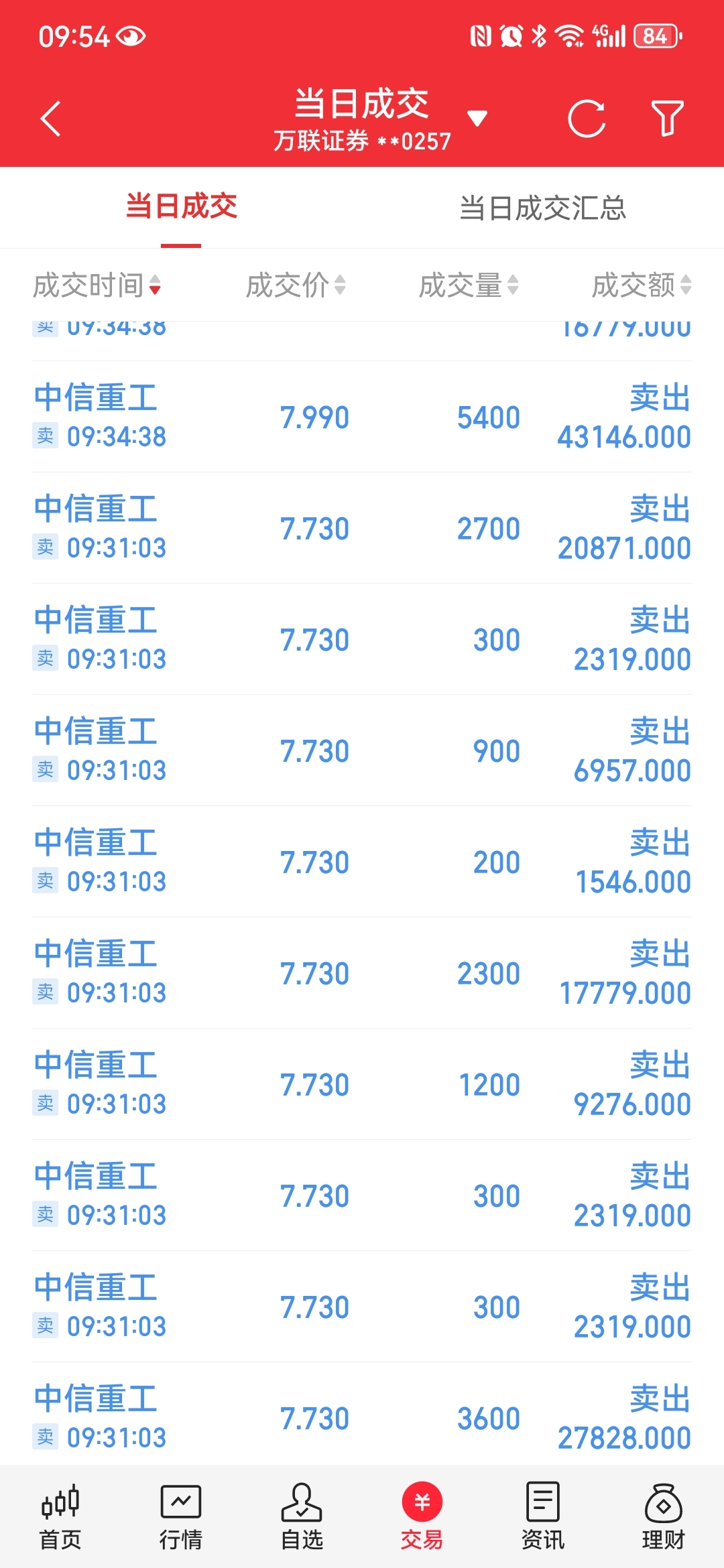 $中信重工(SH601608)$ 7.73和7.99卖的,看到你跌下来了,没那么心痛了