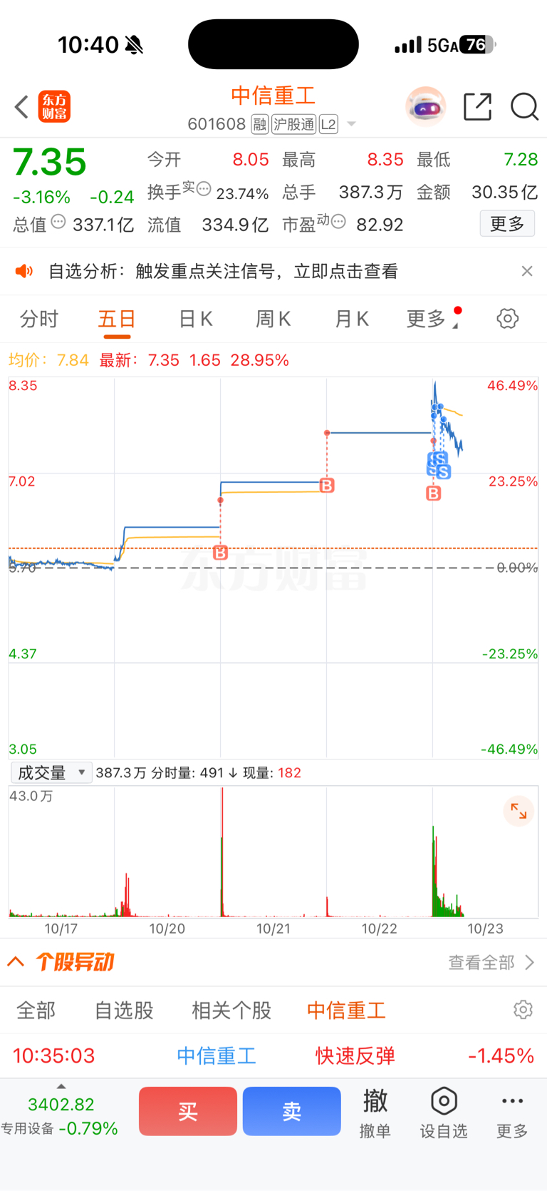 $中信重工(SH601608)$ 韭菜们 我先走一步