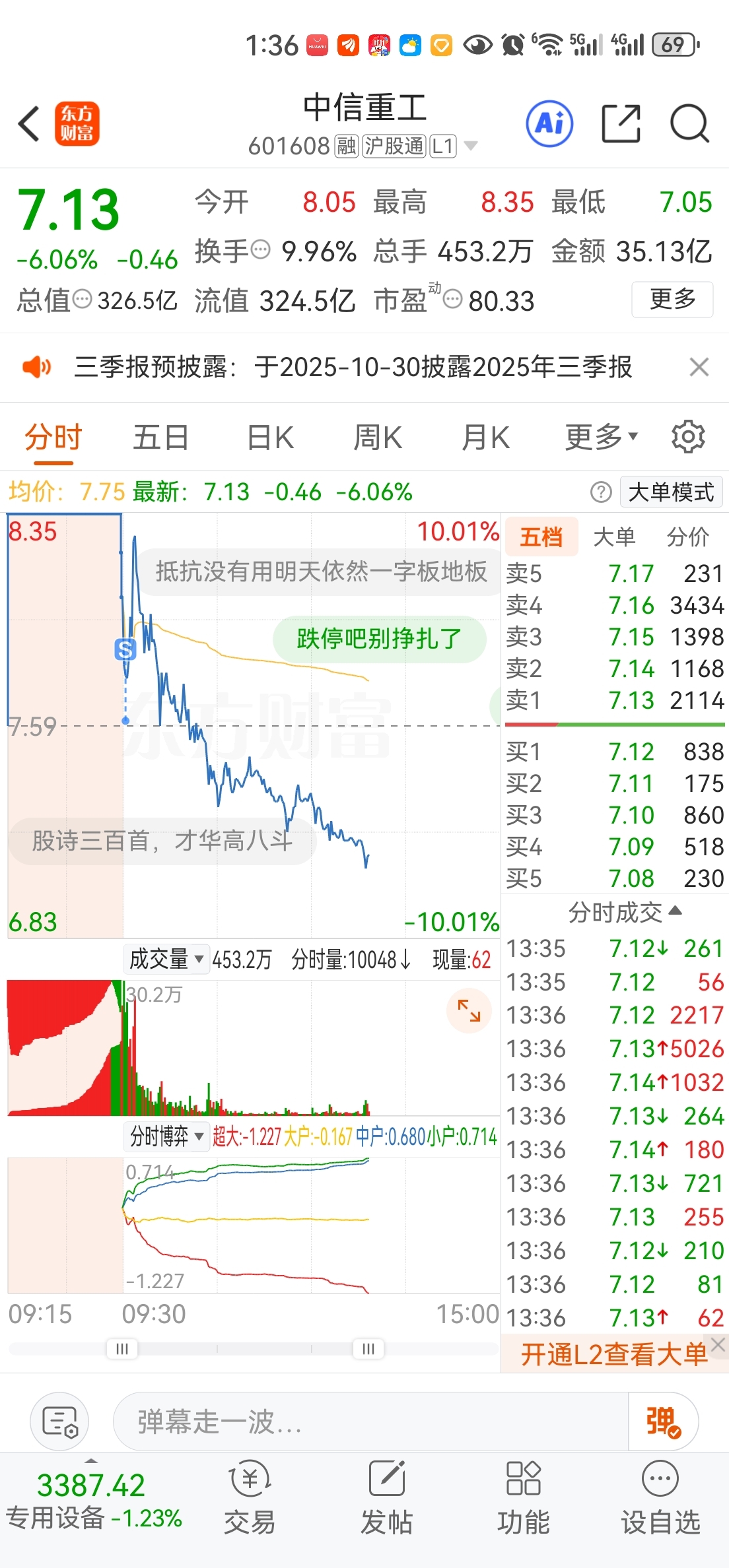 $中信重工(SH601608)$ 开盘6个点没走,谁想氺小割肉,割了主力就拉涨停,家人们看要板了,于是疯狂的抢筹码,大股东激动得,干脆把公司都卖了