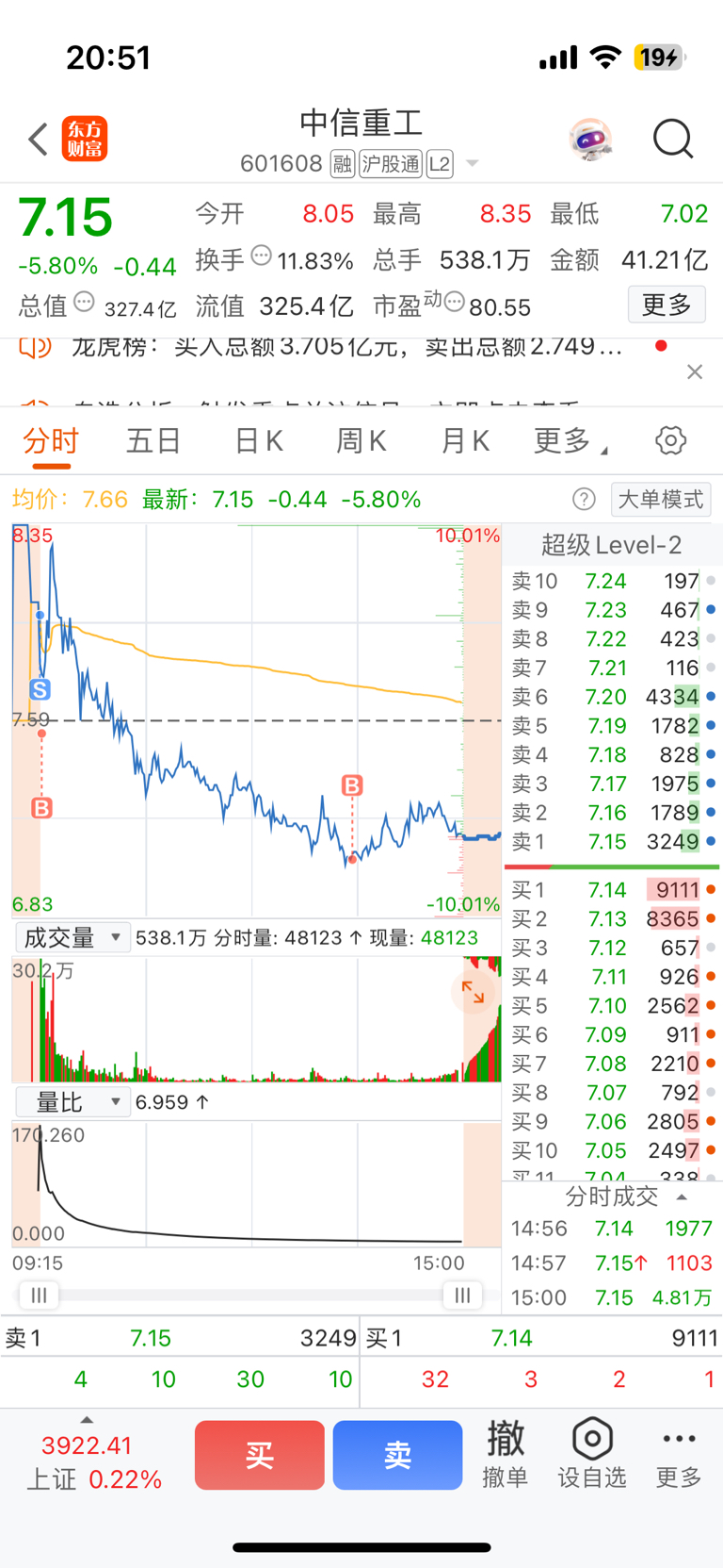 $中信重工(SH601608)$ 游资机构都不怕,我怕个Der